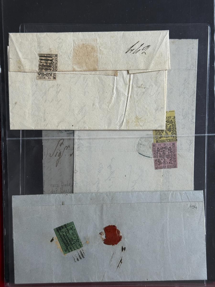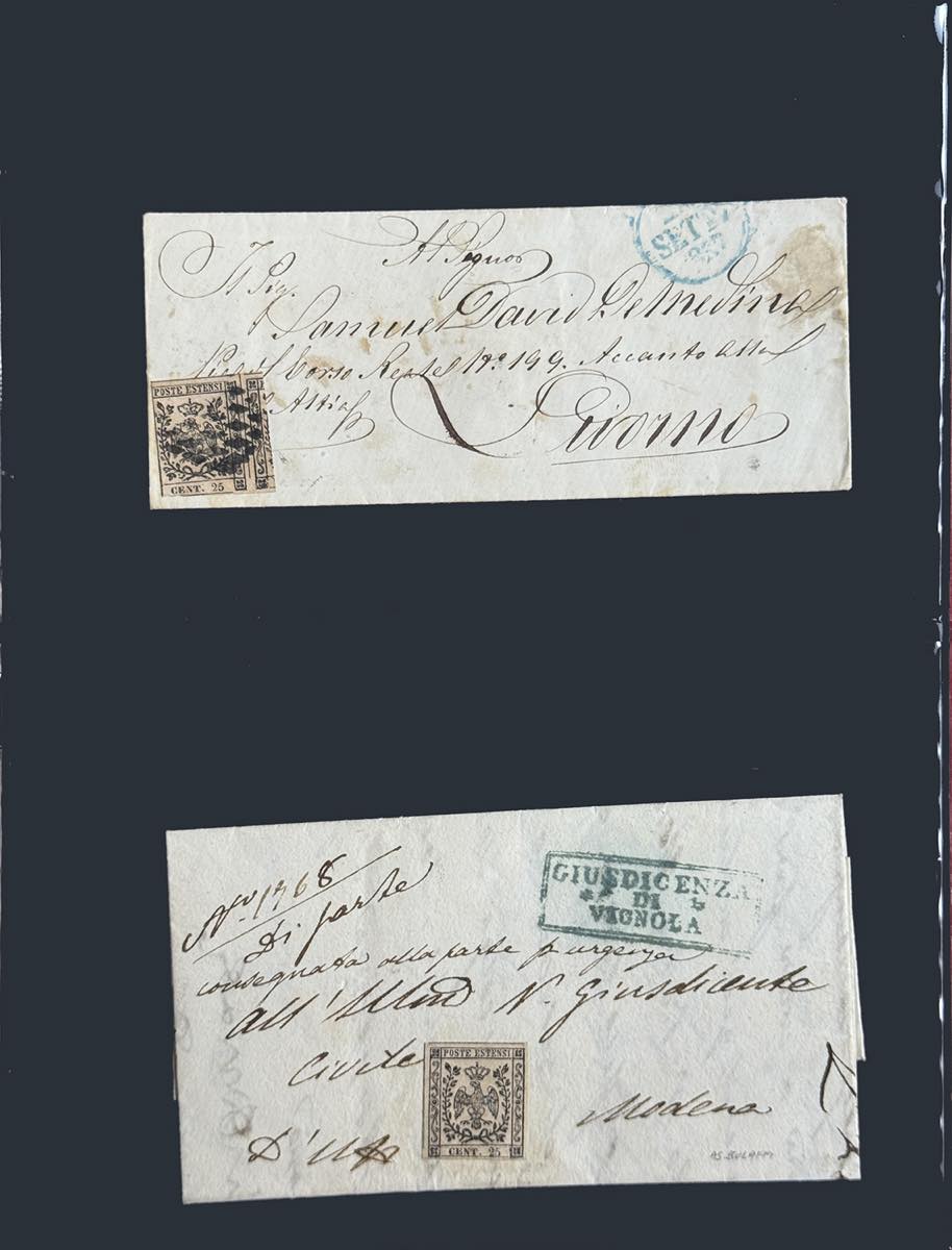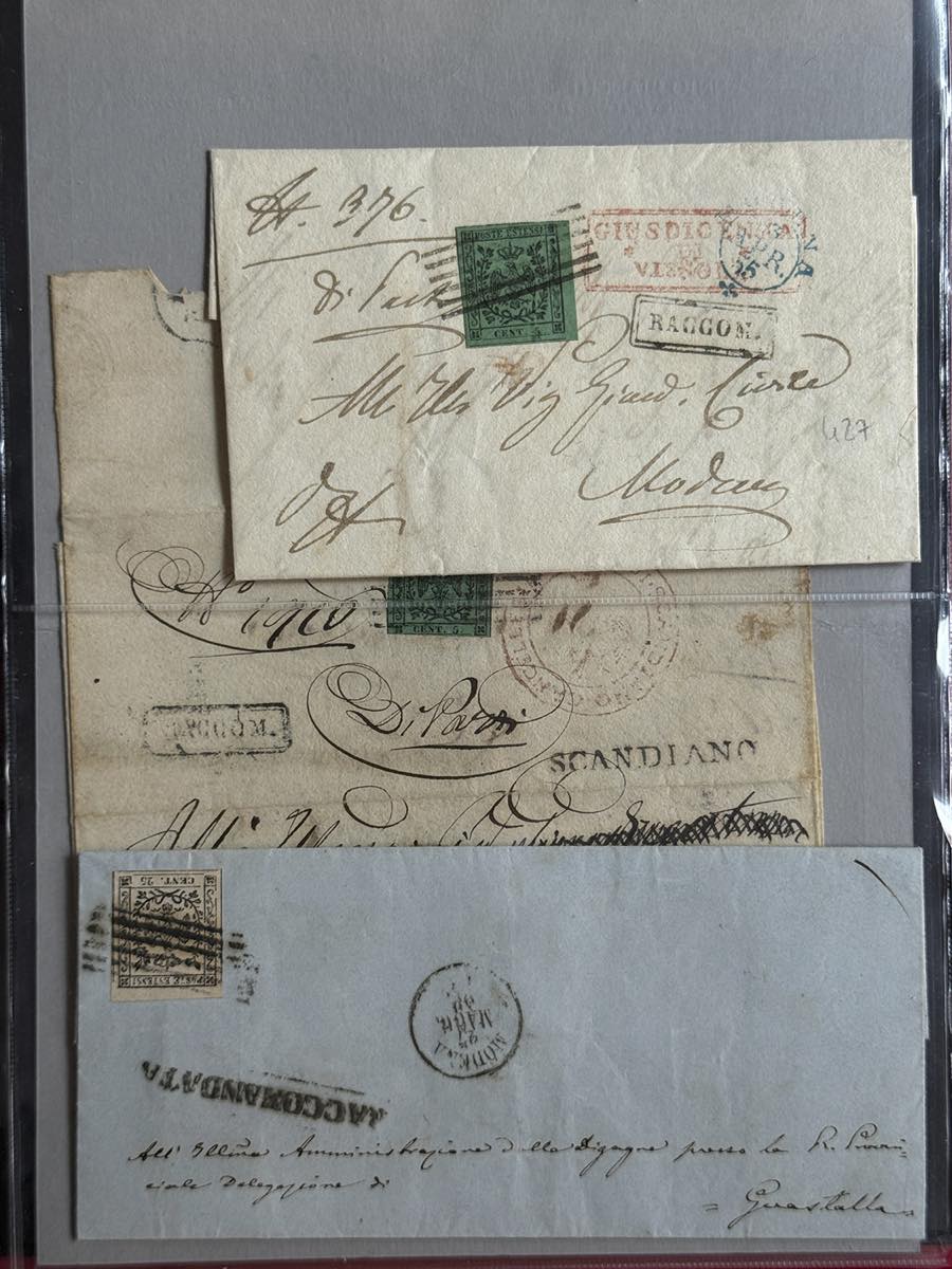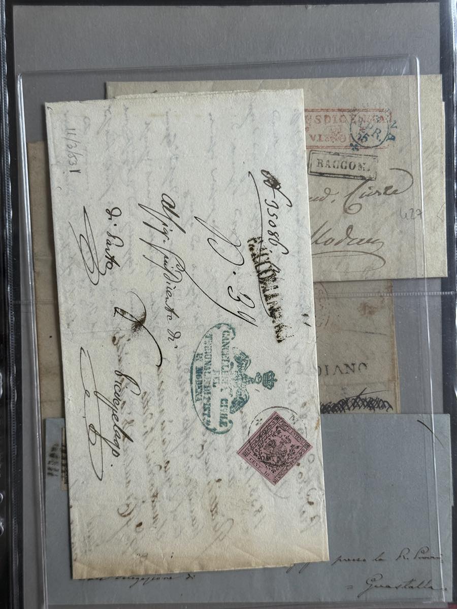 MODENA 1852/1859 - Insieme di 14 lettere e un frammento con buona varietà di affrancature, tra cui 8 raccomandate. Qualità mista, ma insieme non comune. Buon valore di catalogo.