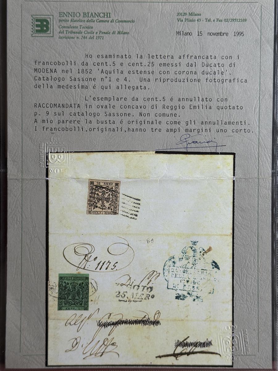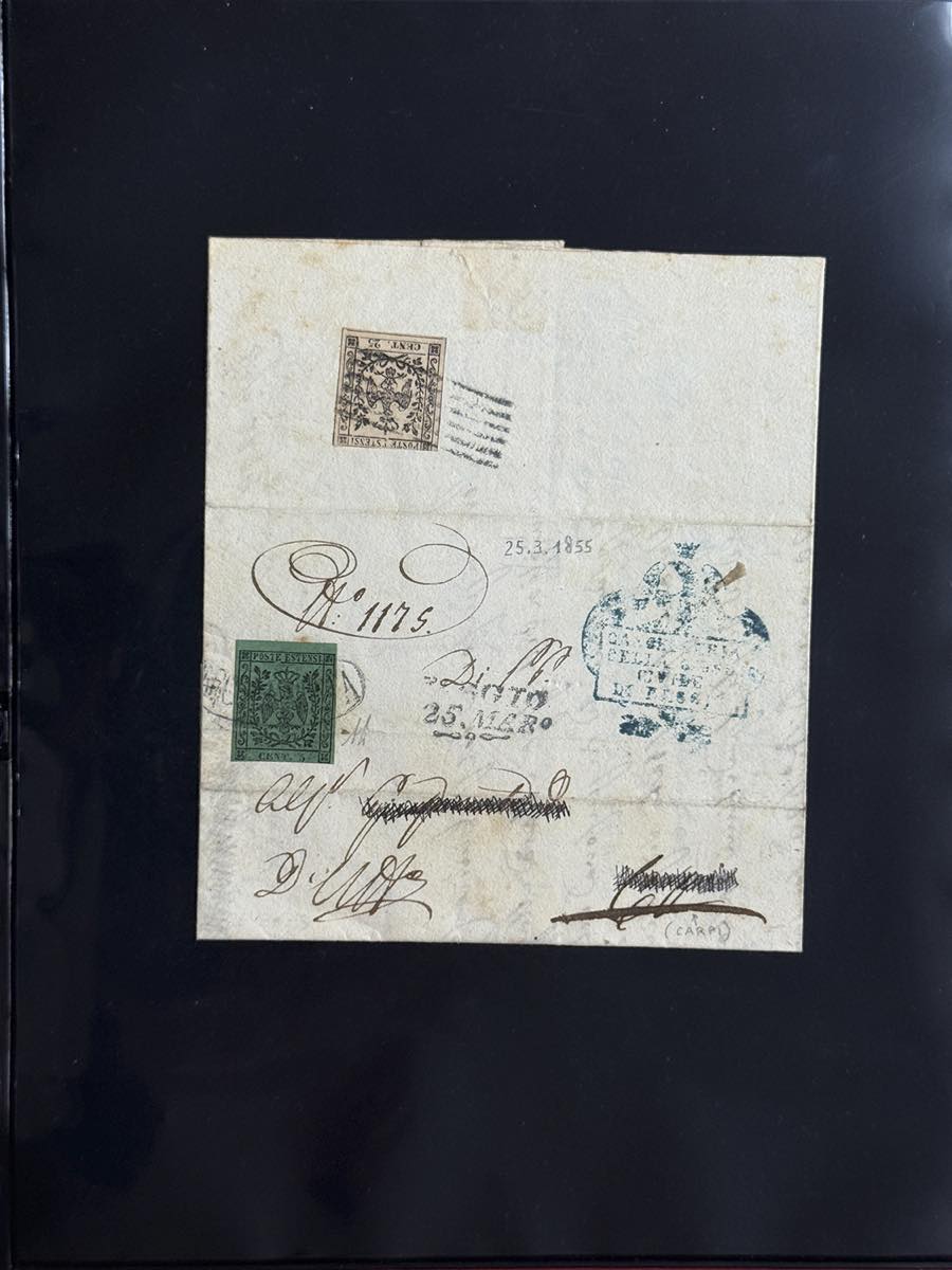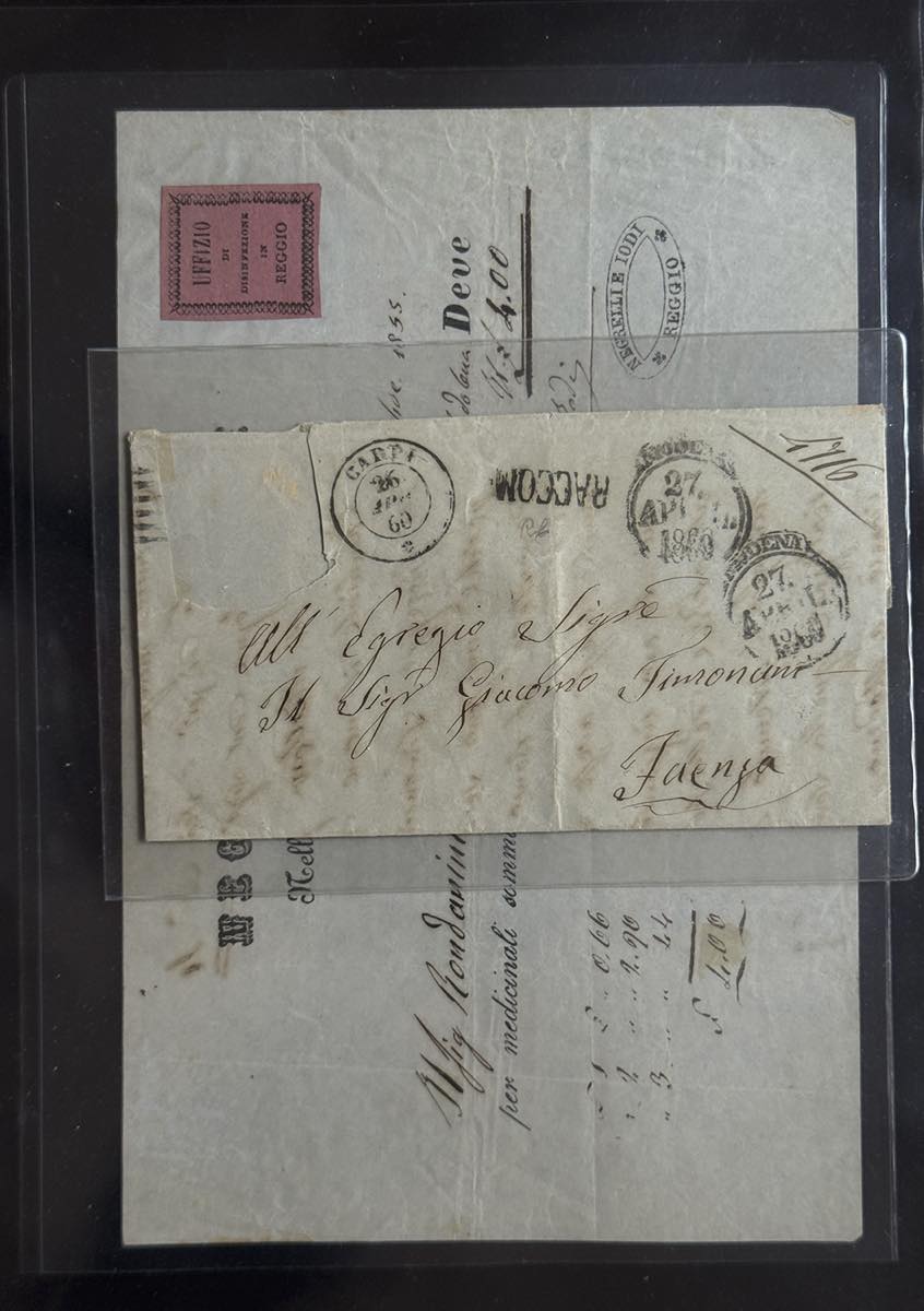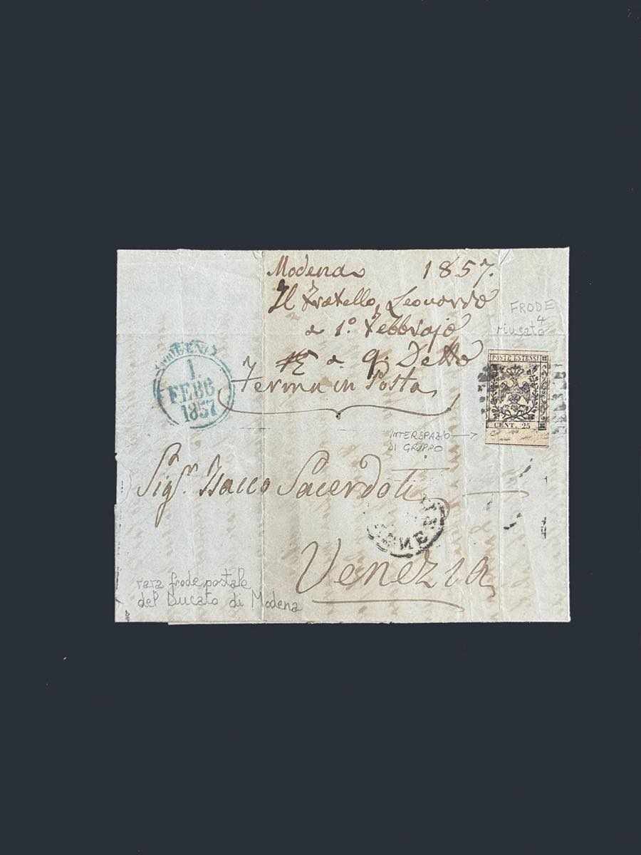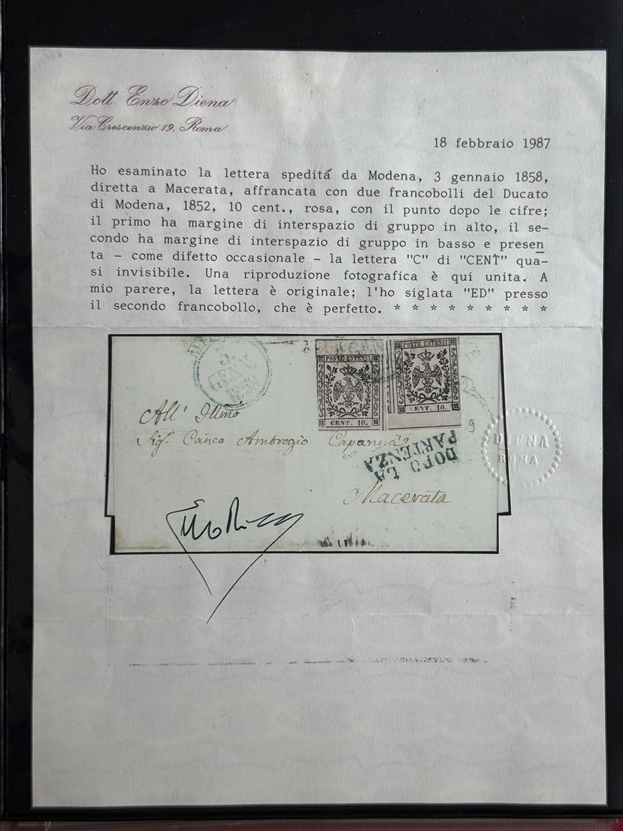 MODENA 1852/1859 - Insieme di 14 lettere e un frammento con buona varietà di affrancature, tra cui 8 raccomandate. Qualità mista, ma insieme non comune. Buon valore di catalogo.