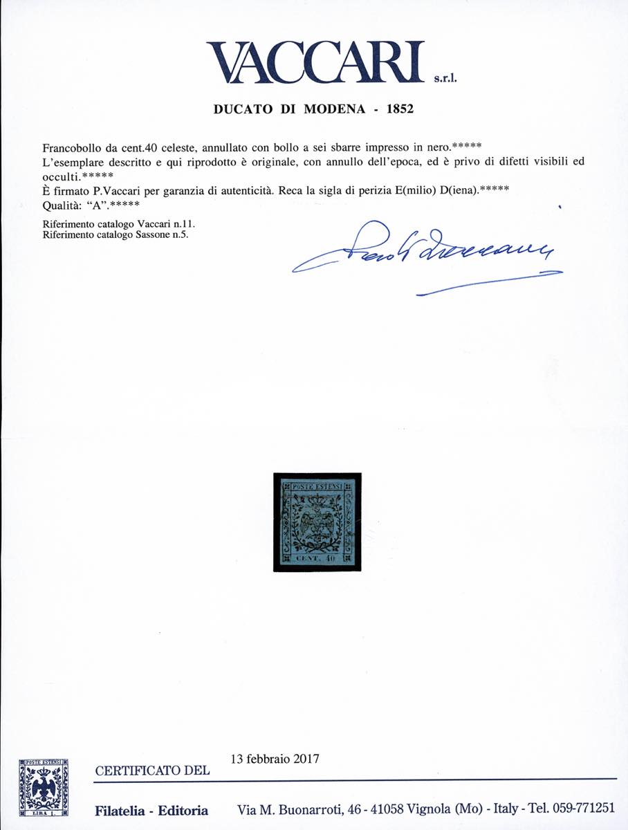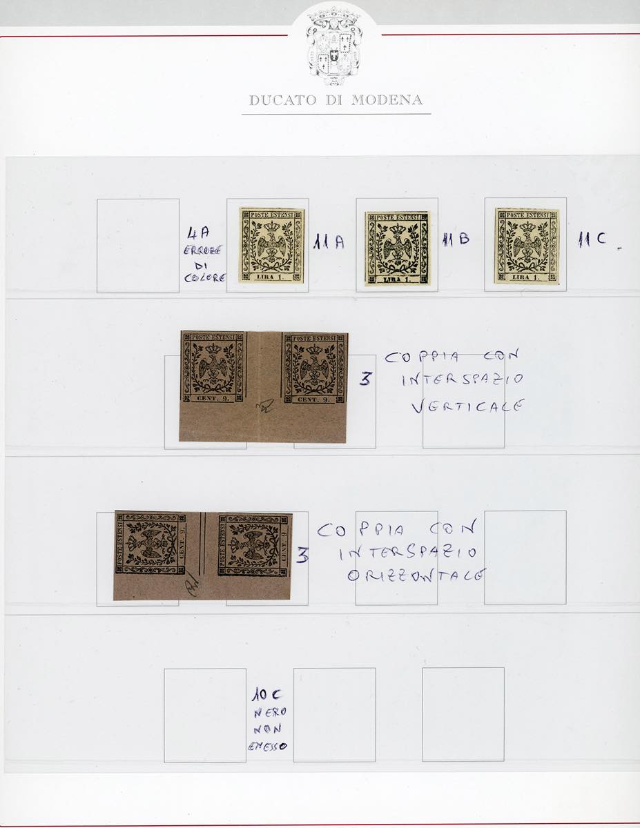 MODENA/GOVERNO PROVVISORIO 1852/1859 - Bella collezione di francobolli nuovi o usati del periodo, in pagine d'album. Gli esemplari sono tutti perfetti, di ottima qualità e firmati da noti periti affidabili (Diena,Vaccari,etc.).