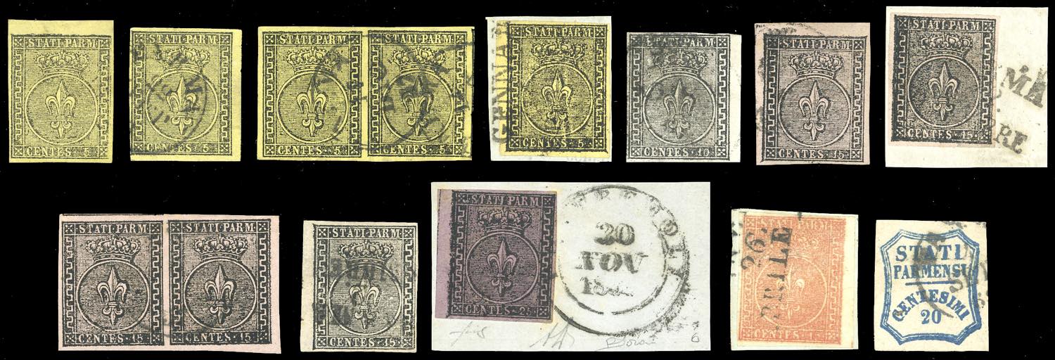 Lotto 2466 - PARMA 1852/59 - Bell'insieme di 14 francobolli e lettere ...