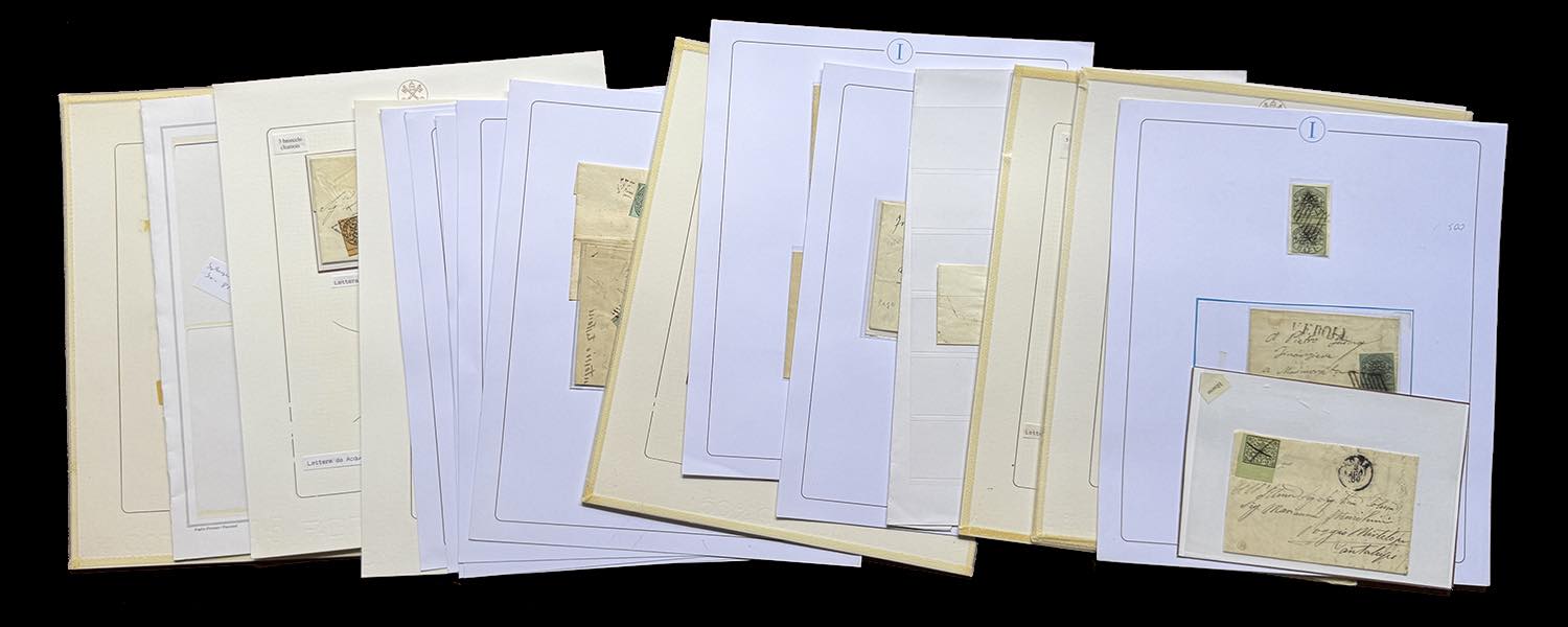STATO PONTIFICIO 1852/1865 - Bell'insieme di lettere affrancate con francobolli mostranti interspazio o in coppie con interspazio di gruppo, generalmente su fogli da esposizione. Elevato valore di catalogo. Ex coll. Imperato.