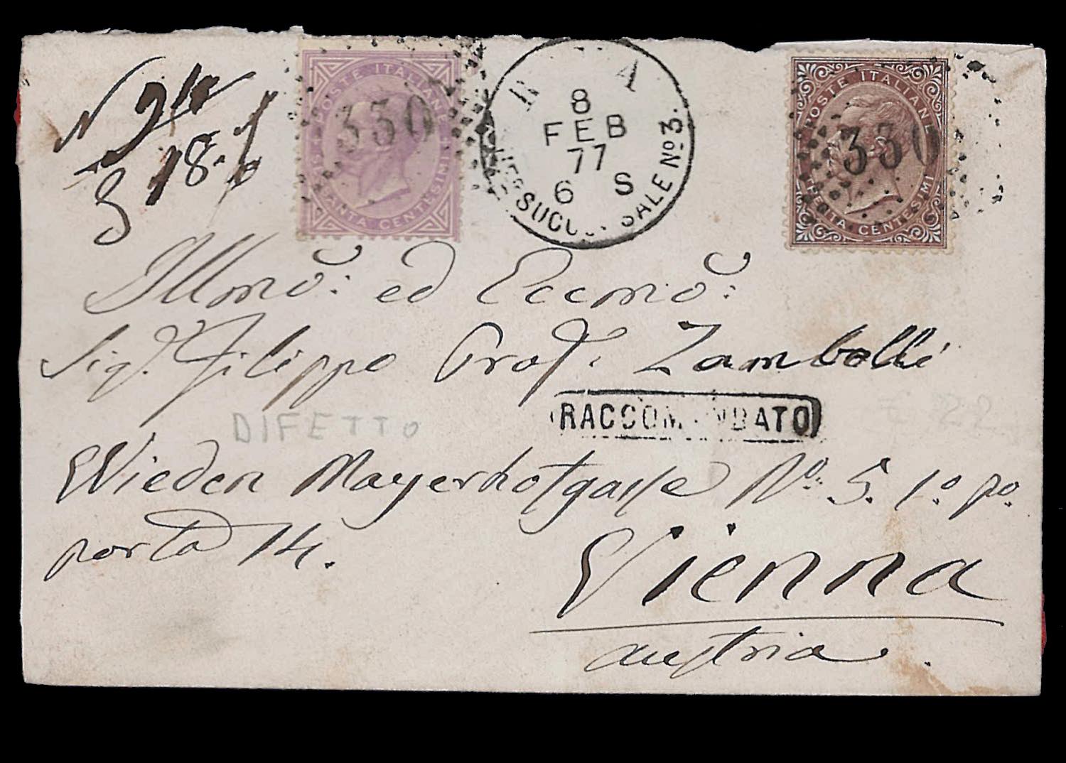 REGNO D'ITALIA/REPUBBLICA ITALIANA 1863/1953 - Piccolo ma selezionato insieme di lettere del periodo con interessanti affrancature e destinazioni. Notato un frontespizio con affrancatura pentacolore della Floreale per Buenos Aires. Merita esame.