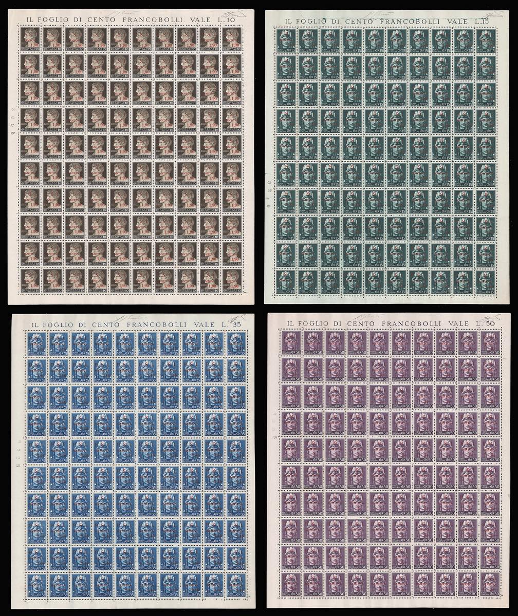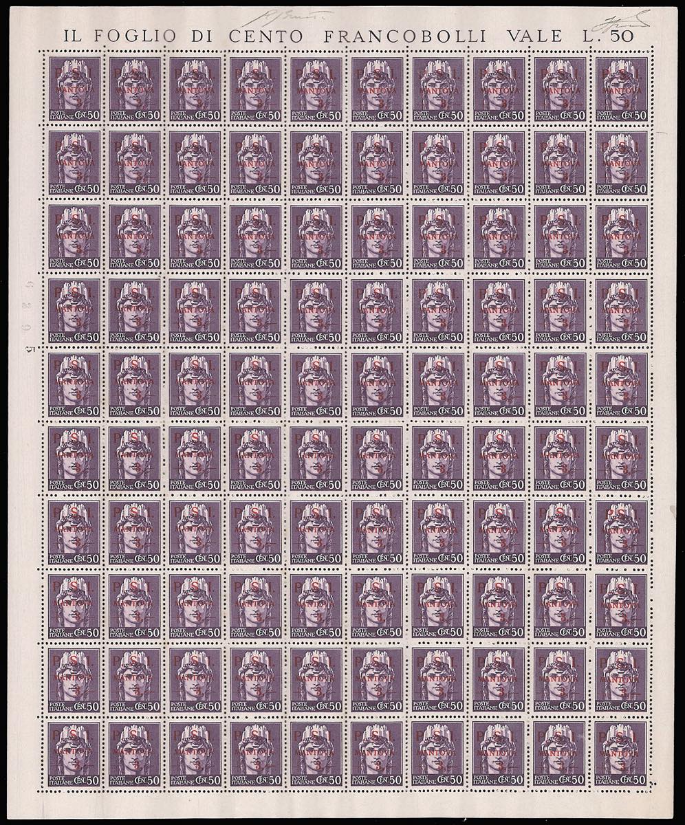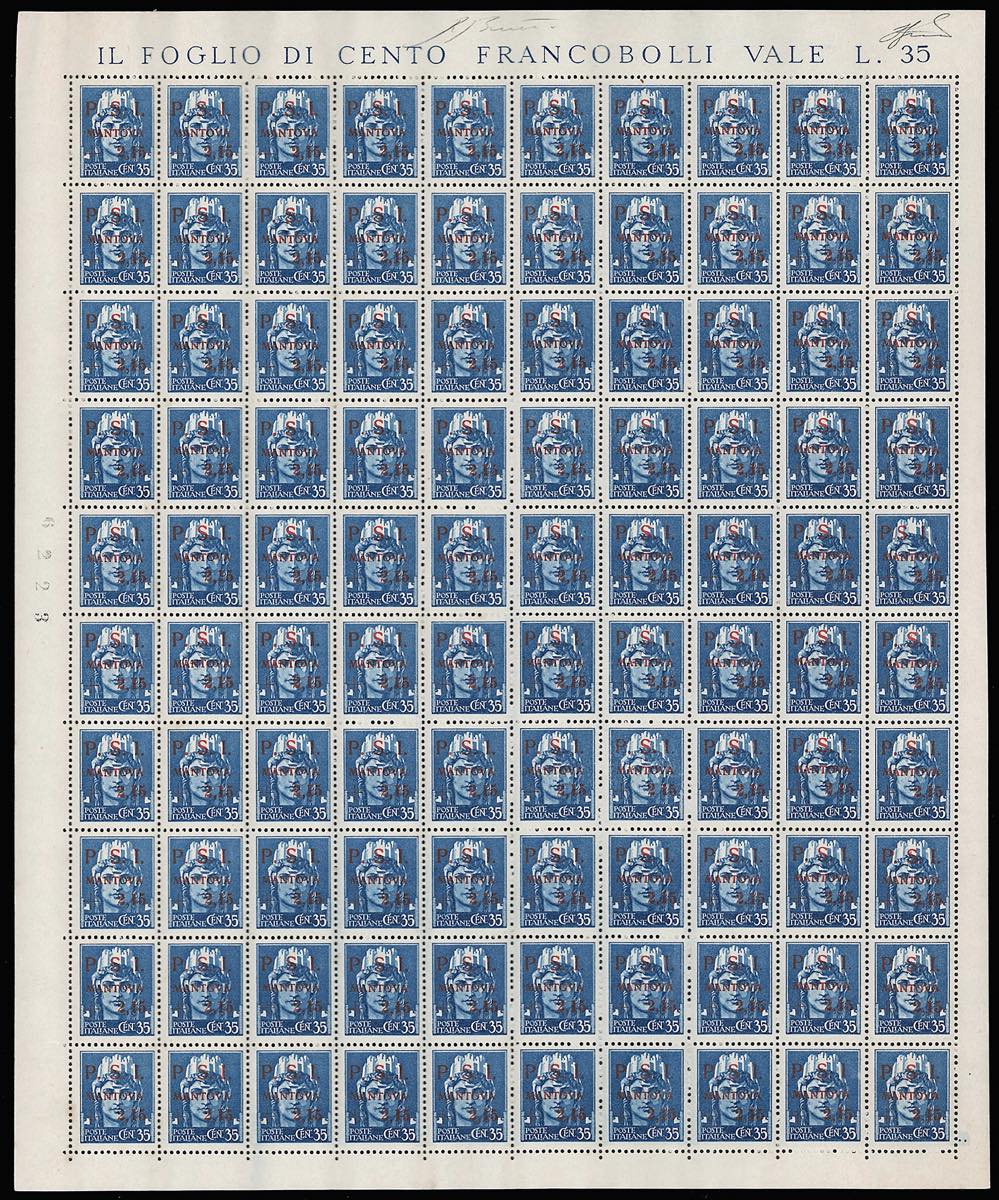 C.L.N. MANTOVA 1945 - I primi 4 esemplari dell'emissione in fogli di 100 esemplari (1/4), gomma integra, con tutte le varietà ... Leggi tutto