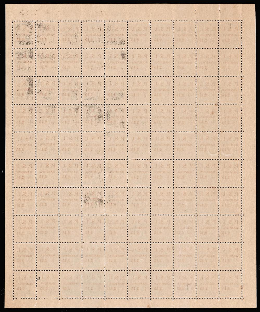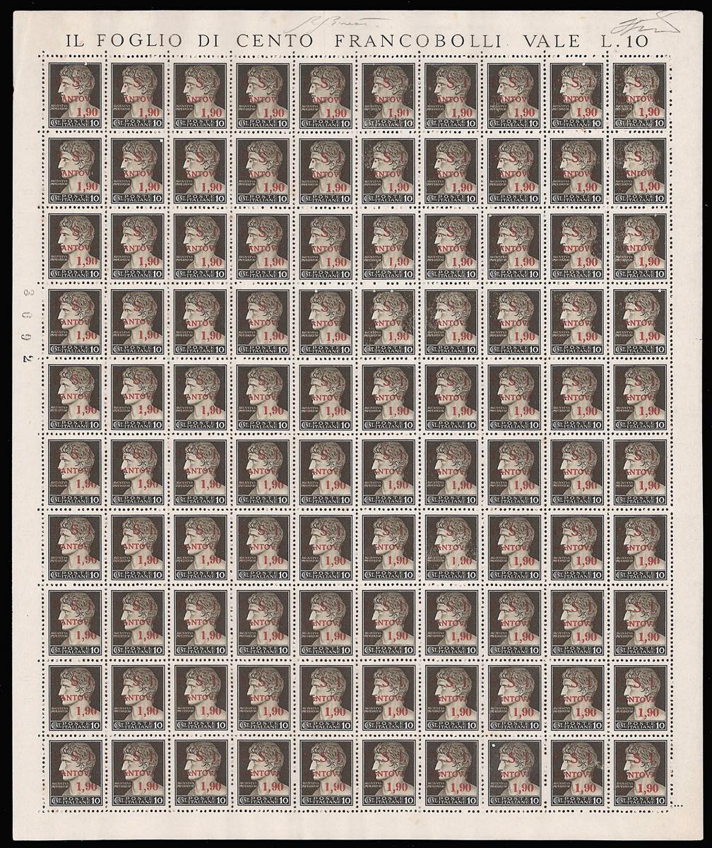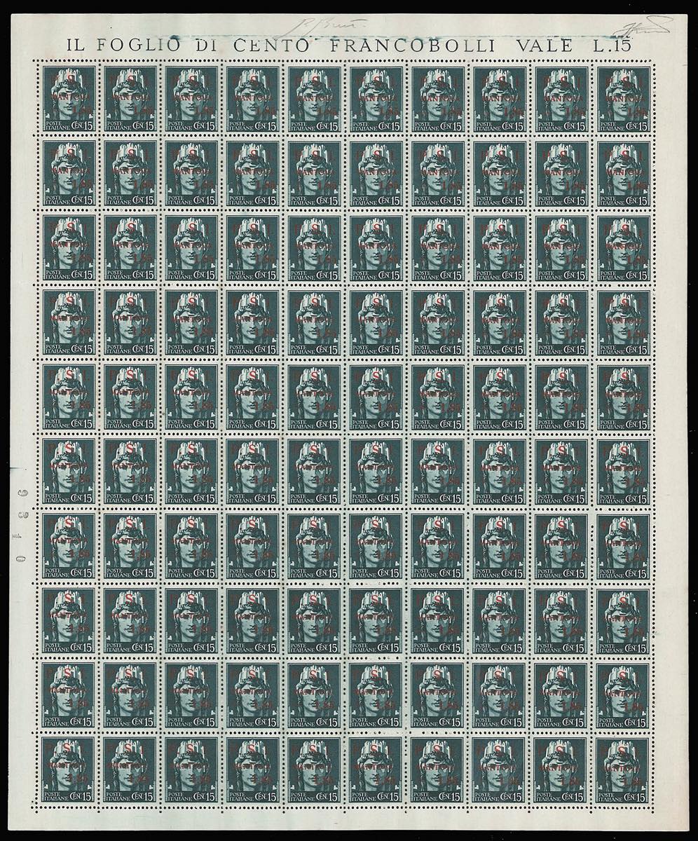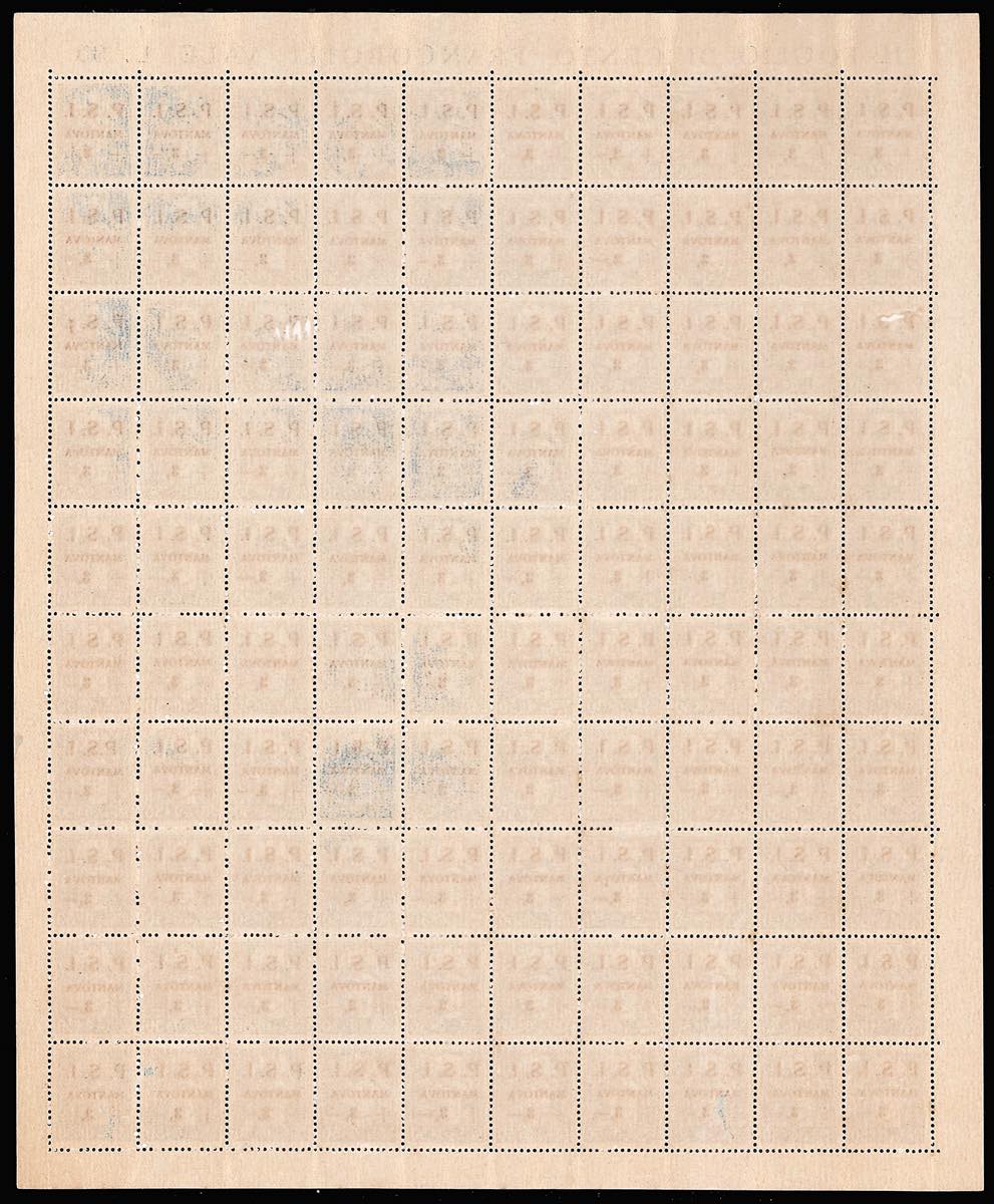 C.L.N. MANTOVA 1945 - I primi 4 esemplari dell'emissione in fogli di 100 esemplari (1/4), gomma integra, con tutte le varietà ... Leggi tutto