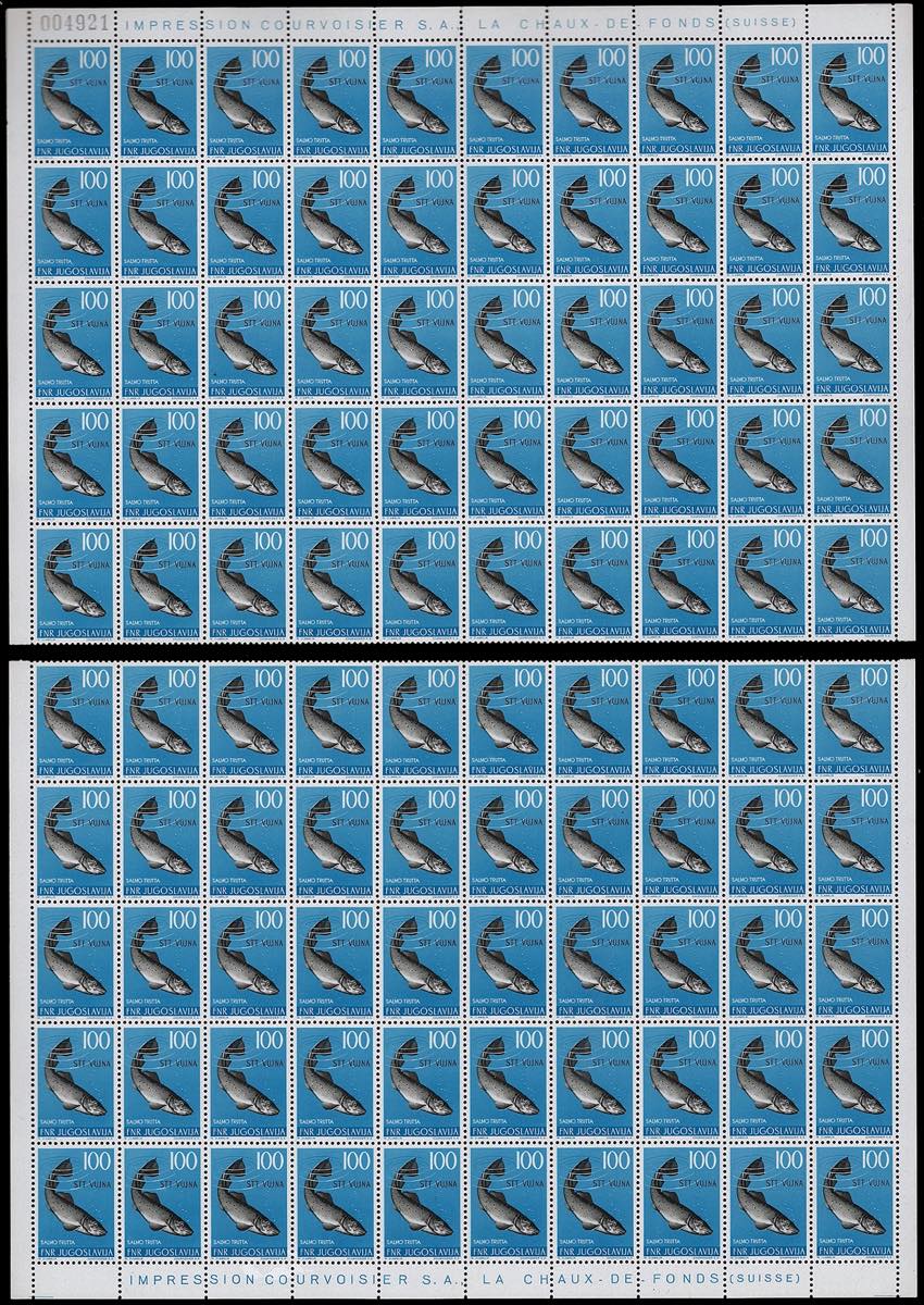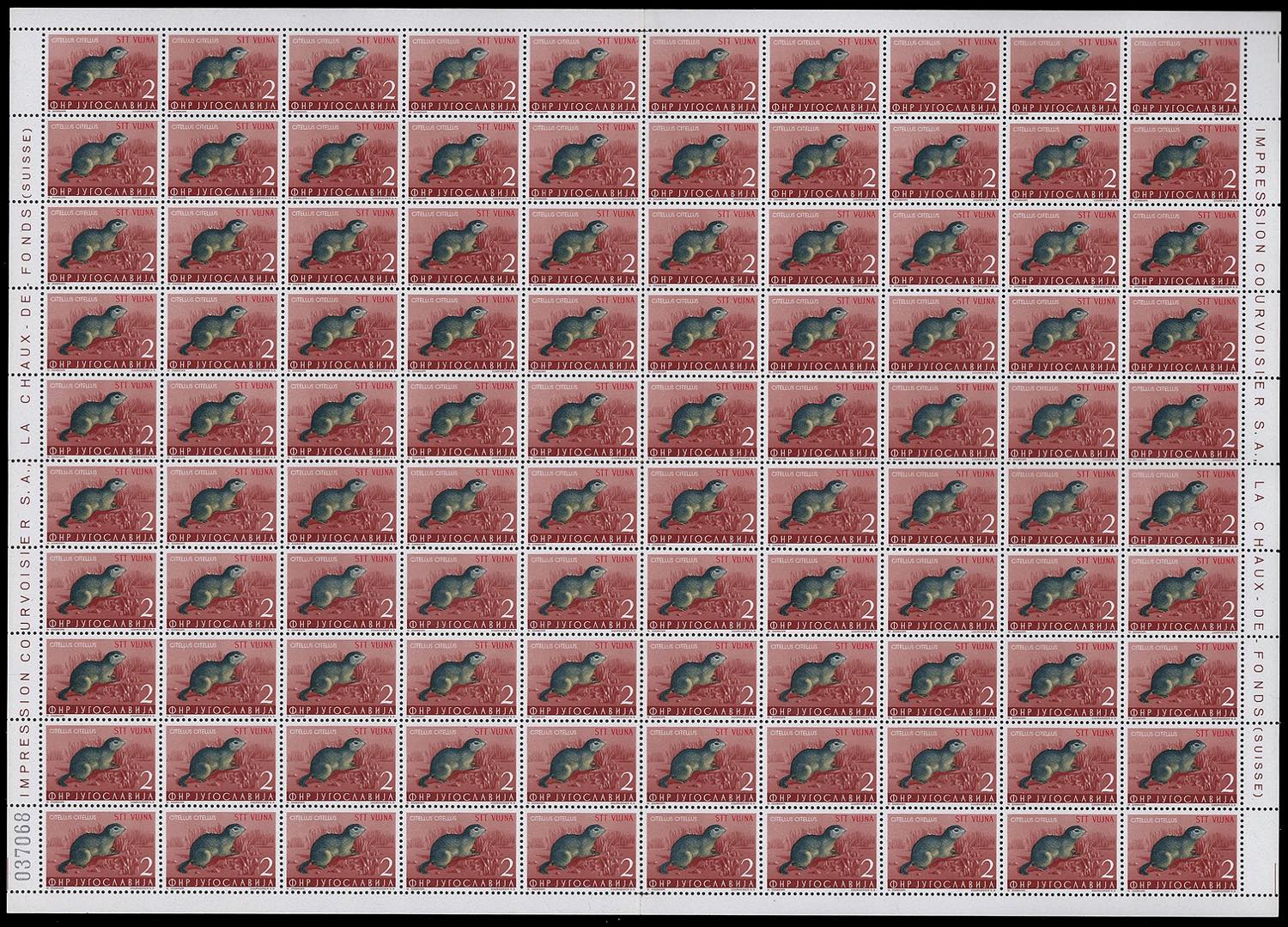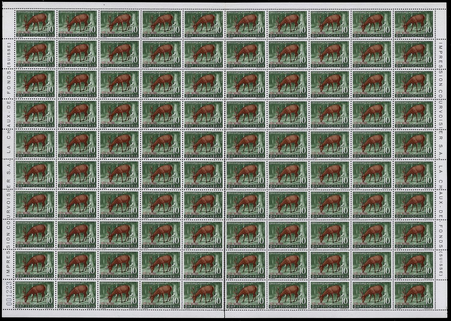 TRIESTE B 1954 - Serie completa Animali in fogli di 100 esemplari, tranne il 100 din. che è in due blocchi di 50 (101/112), nuovi, gomma ... Leggi tutto