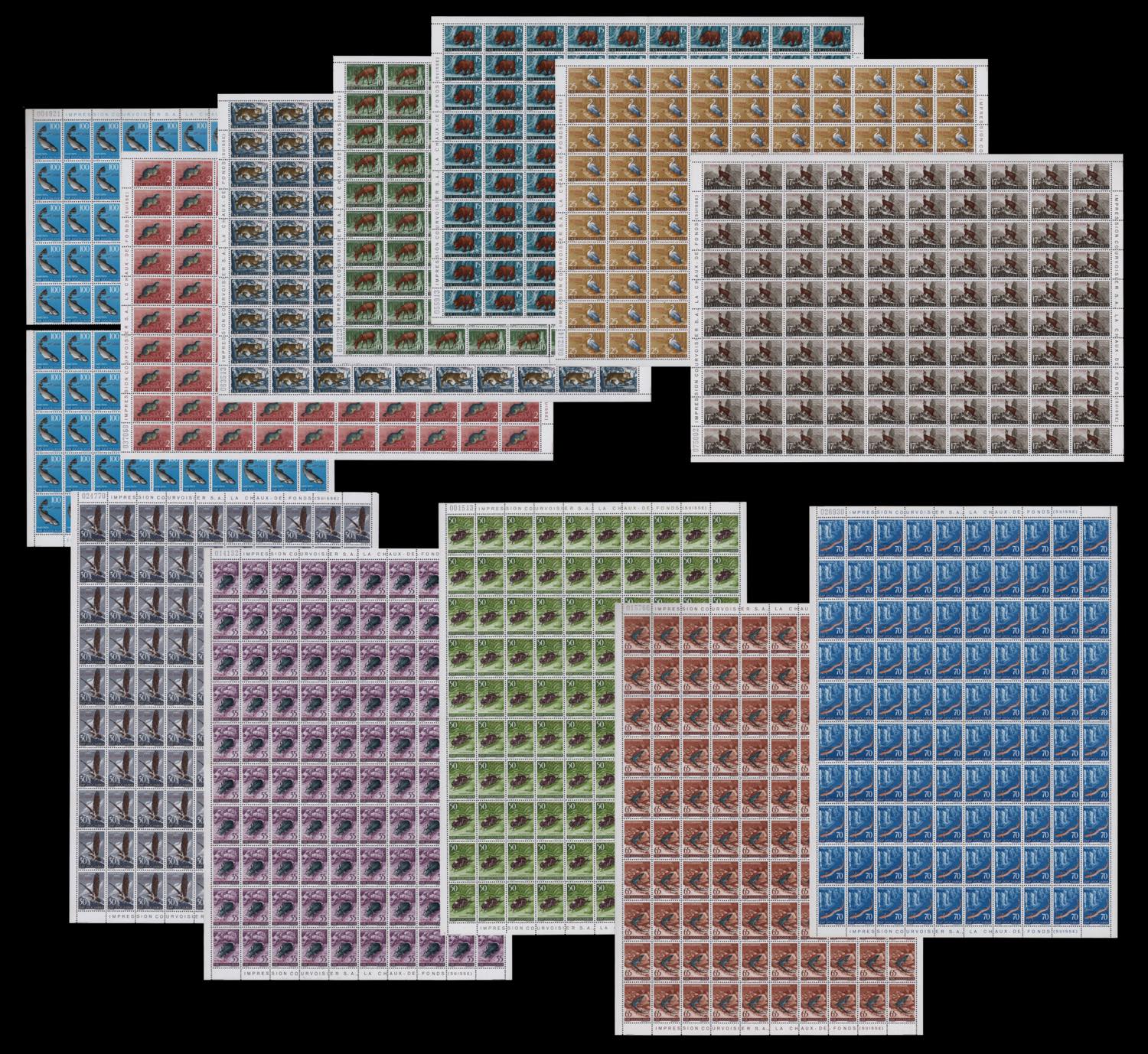TRIESTE B 1954 - Serie completa Animali in fogli di 100 esemplari, tranne il 100 din. che è in due blocchi di 50 (101/112), nuovi, gomma originale integra, perfetti. Molto belli e raro insieme!