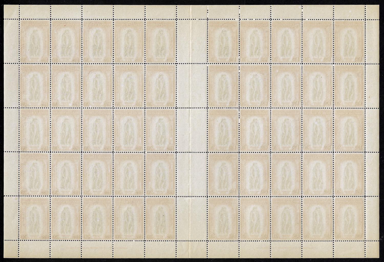 SAN MARINO 1942 - 20 lire su 75 cent. Delfico soprastampato (227), foglio doppio di 50 esemplari con interspazio di gruppo al centro, gomma ... Leggi tutto