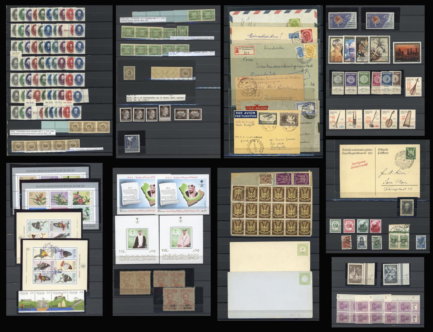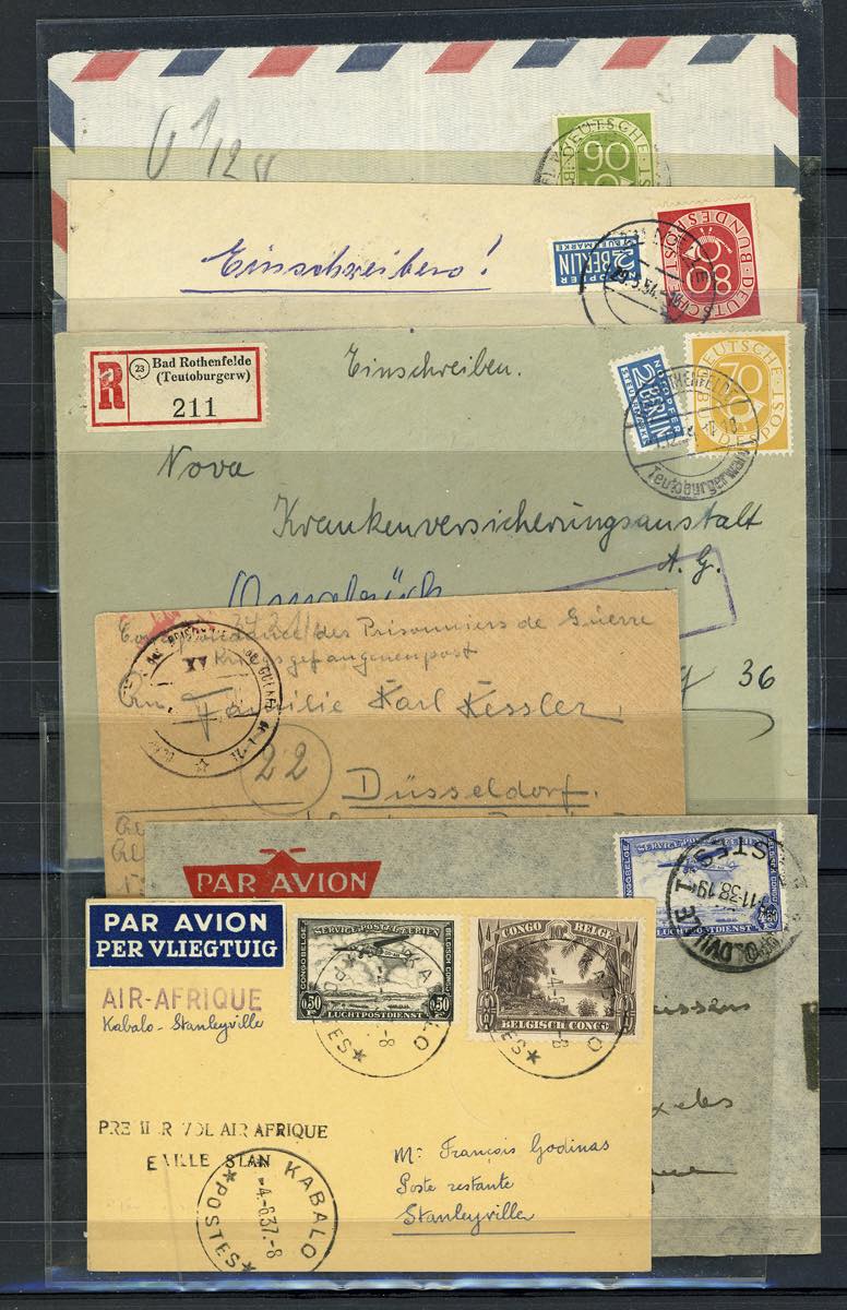 MONDIALI 1850/1980 - Eterogeneo insieme di francobolli e lettere del periodo in pagine di classificatore. Buon valore di catalogo, divertente.