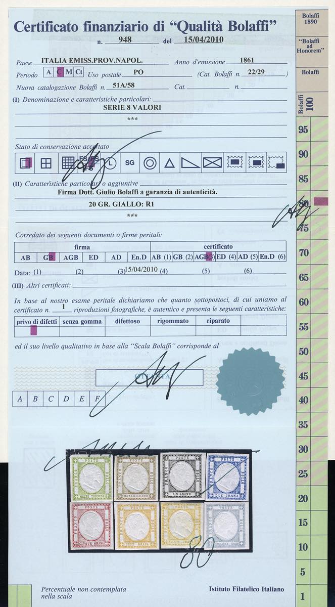1861 - L'emissione completa (17/24), nuovi, gomma originale integra, perfetti, splendidi. Alti valori firmati Giulio Bolaffi, cert. ... Leggi tutto