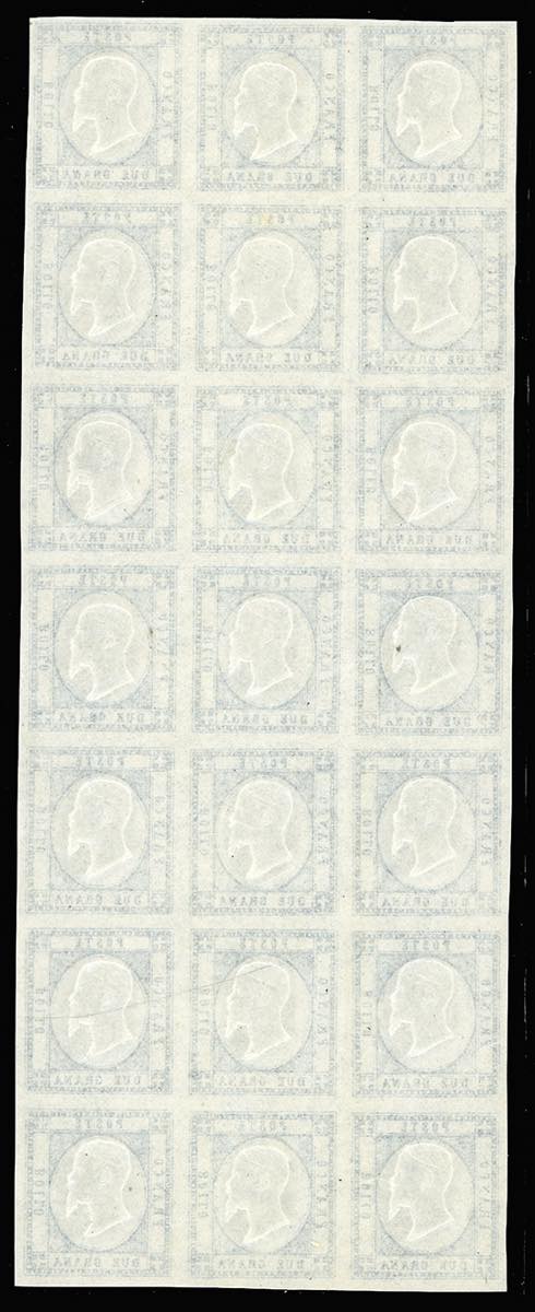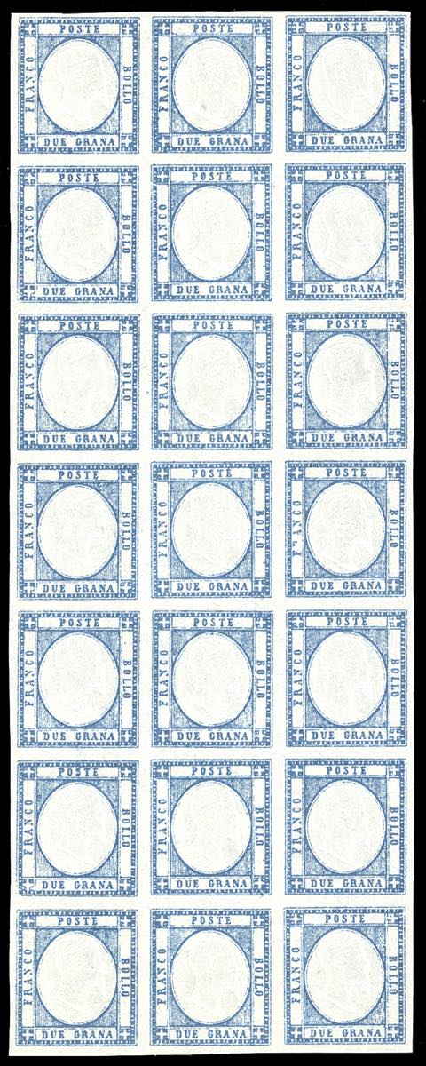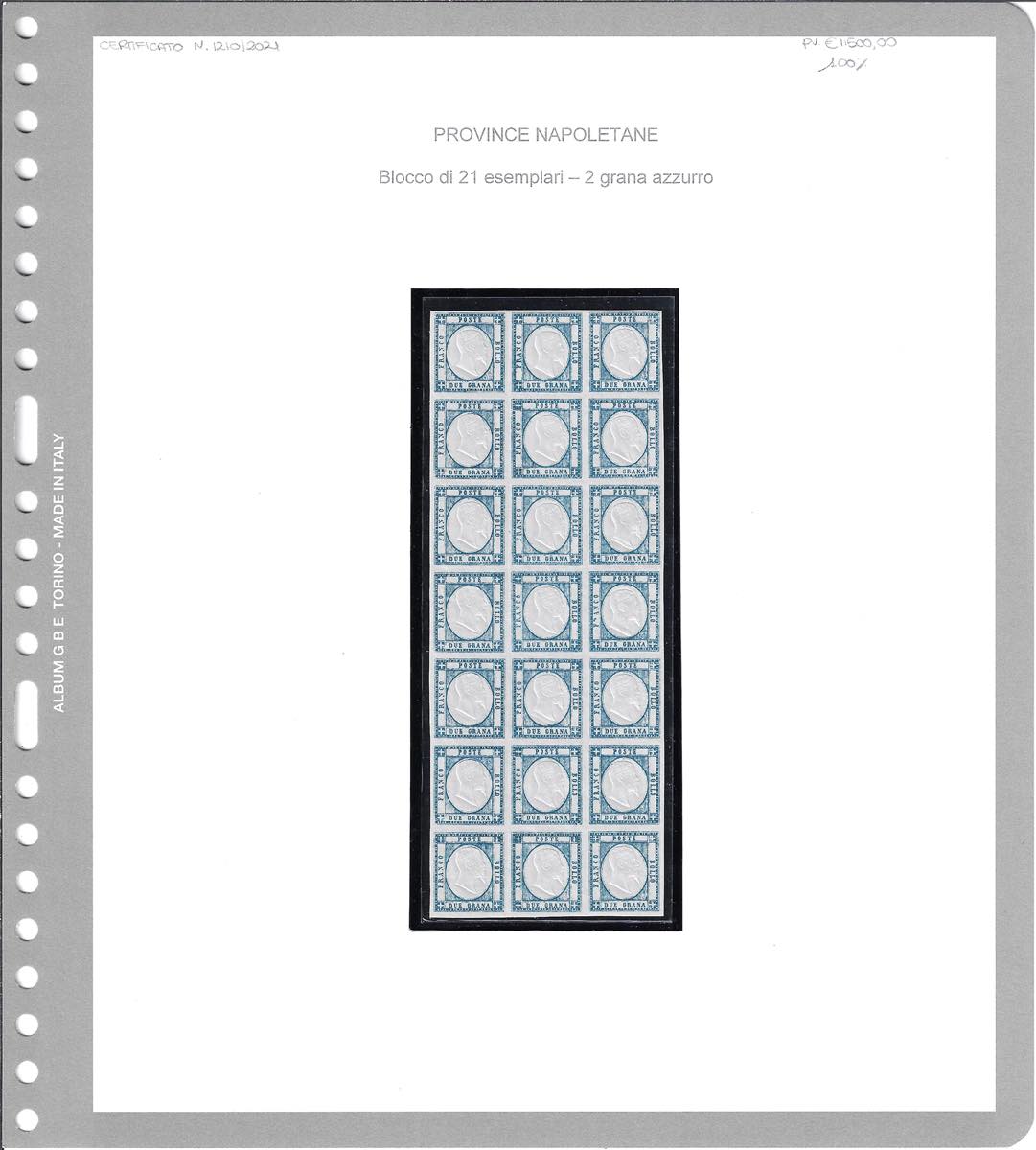 Lotto 35 - 1861 - 2 grana azzurro (20), blocco di 21 esemplari, nuovo, ...