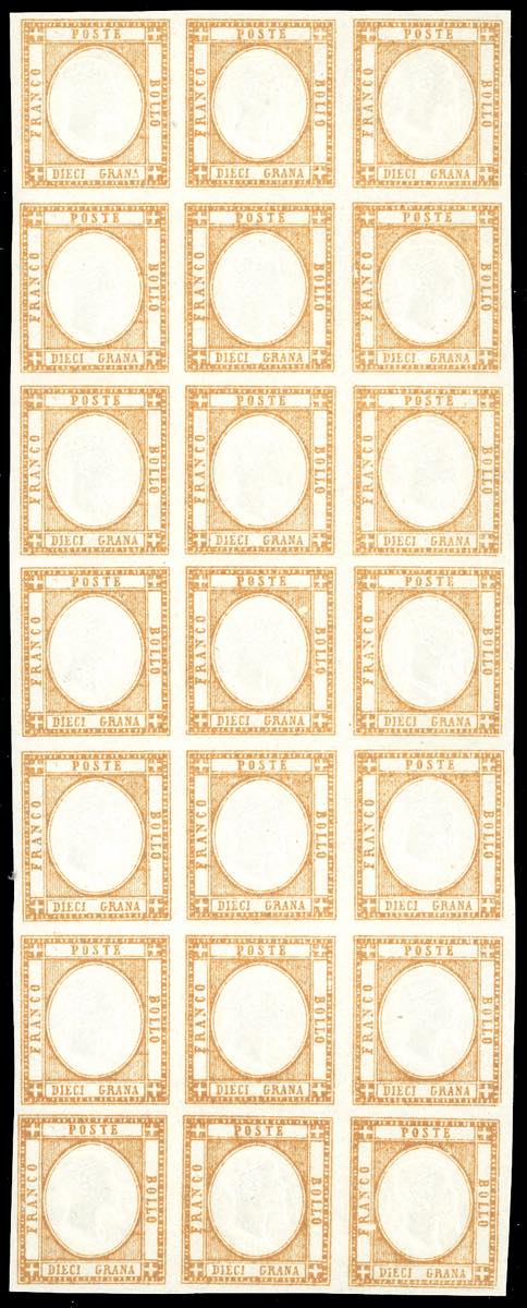Lotto 37 - 1861 - 10 grana arancio (22), blocco di 21 esemplari, ...