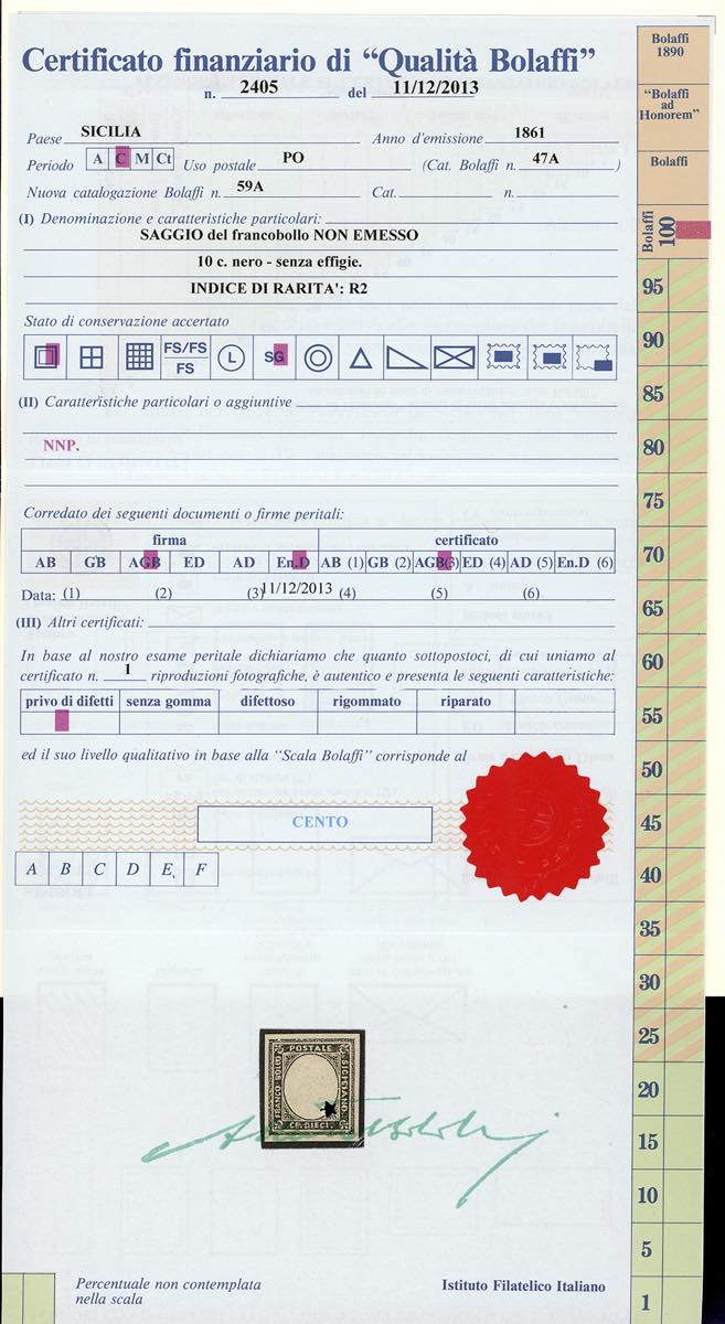 Lotto 100 - SAGGI 1860 - 10 cent. nero, saggio Ficarotta, senza effigie ...