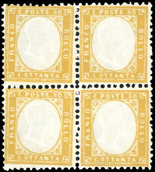 Lotto 125 - 1862 - 80 cent. giallo arancio (4), blocco di quattro, ...