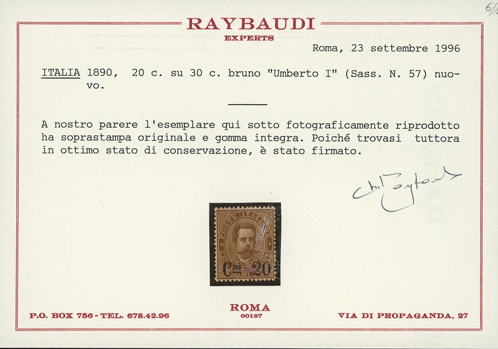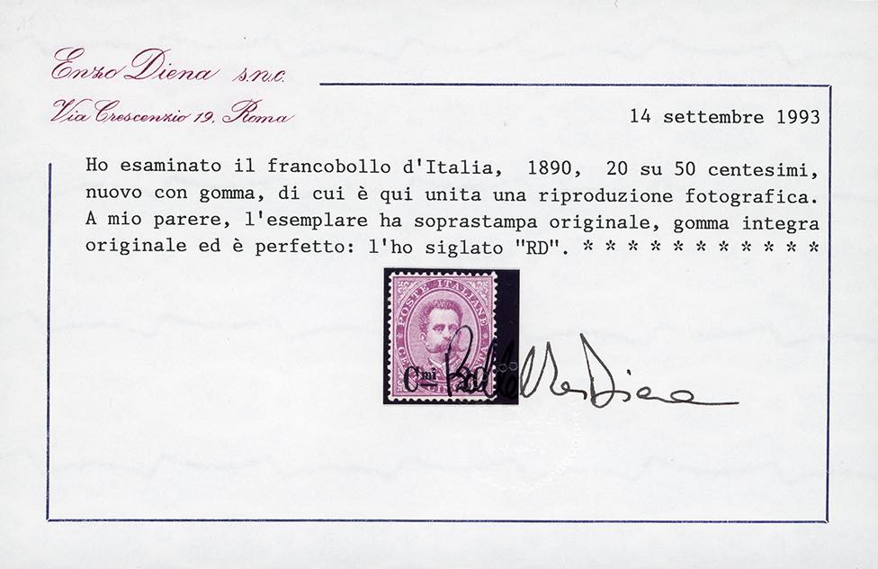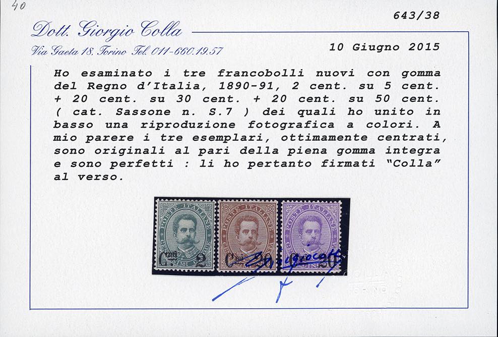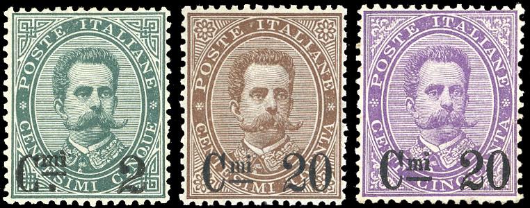 1890/91 - Soprastampati, serie completa (56/58), centratura eccezionale, nuovi, gomma originale integra, perfetti e di ottima qualità. Molto belli! Cert. Raybaudi per il n. 57, Diena per il n. 58, Colla per la serie.
