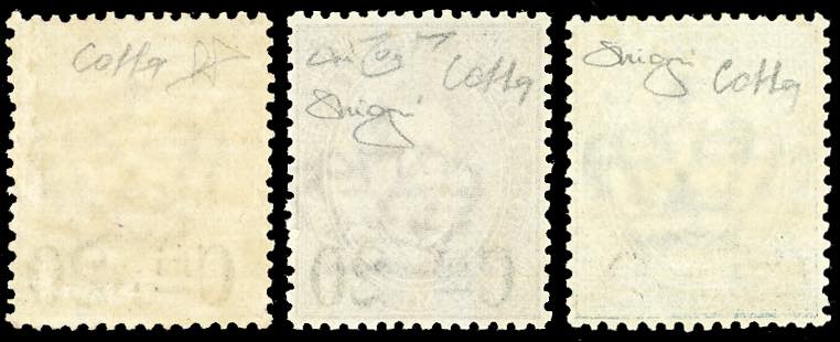 1890/91 - Soprastampati, serie completa (56/58), centratura eccezionale, nuovi, gomma originale integra, perfetti e di ottima qualità. ... Leggi tutto