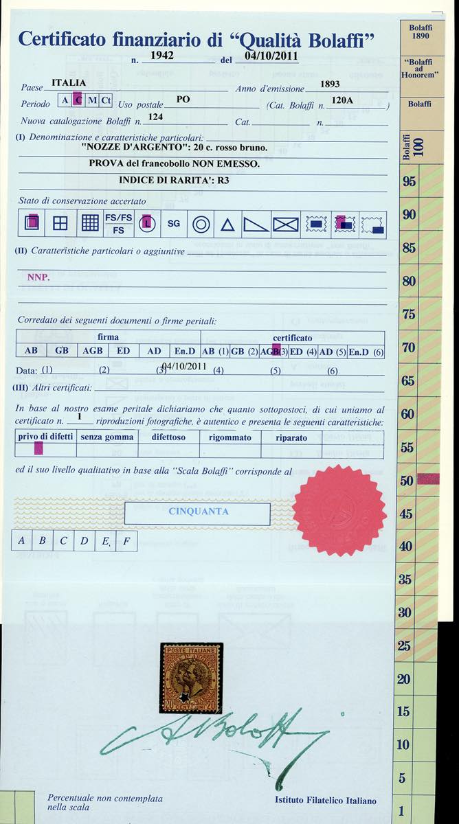 Lotto 165 - 1893 - 20 cent. rosso bruno e bruno, Nozze d'argento, non ...