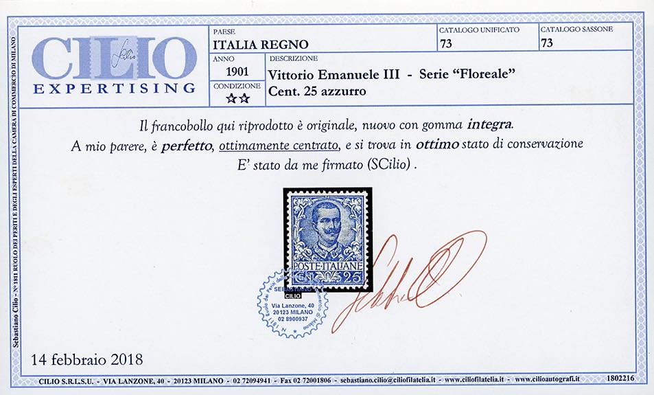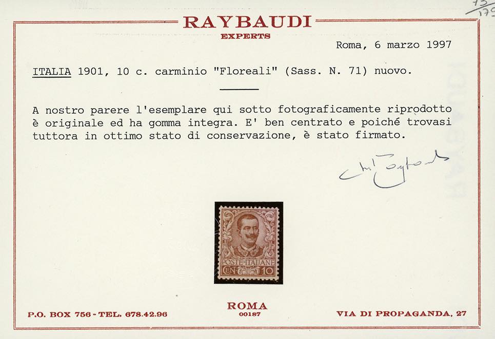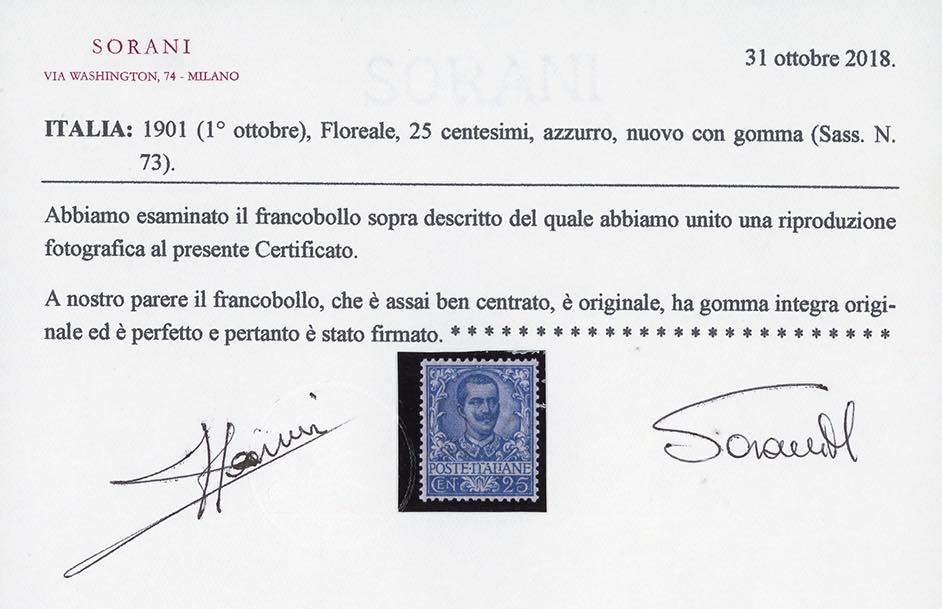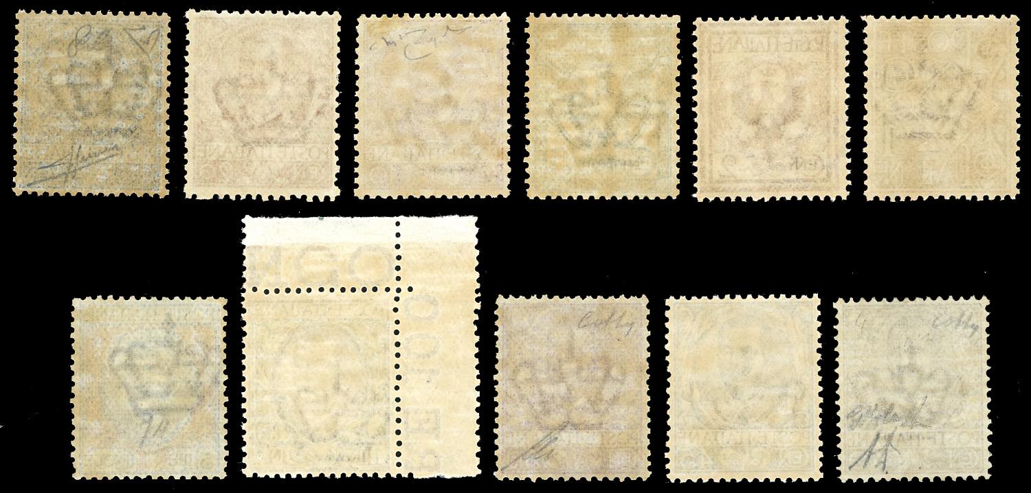 1901 - Floreale, serie completa (68/78), ottima centratura, nuovi, gomma originale integra, perfetti. Splendidi e molto rari di questa qualità. Cert. Raybaudi per il 10 cent., cert. Sorani e Cilio per il 25 cent., cert. Colla per il 40 e il 50 cent.