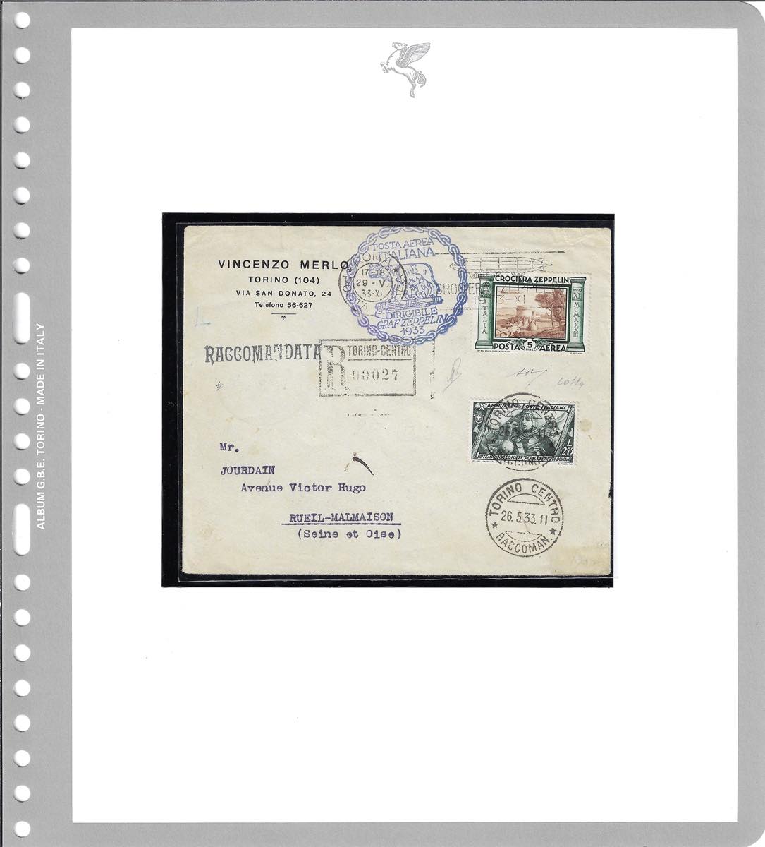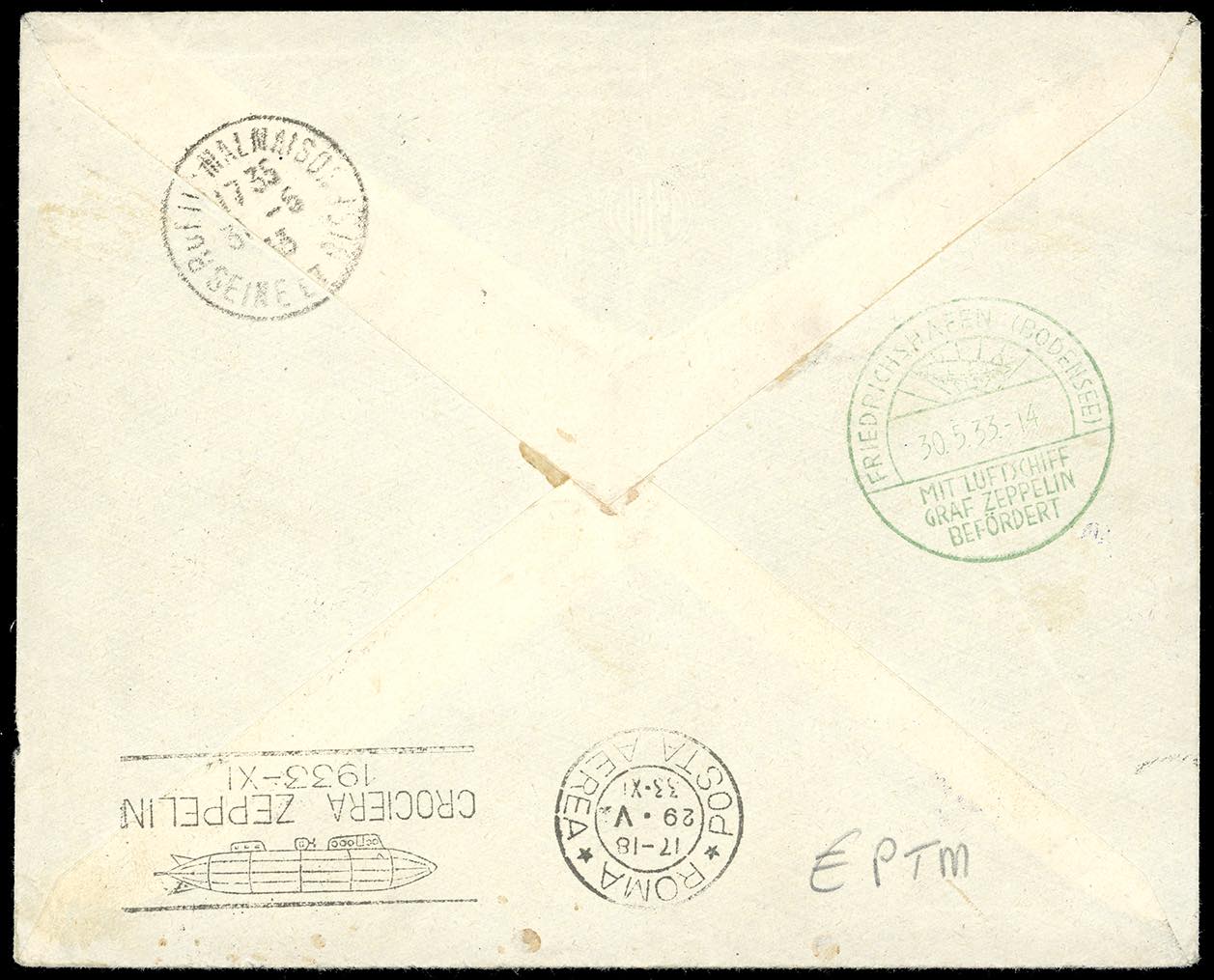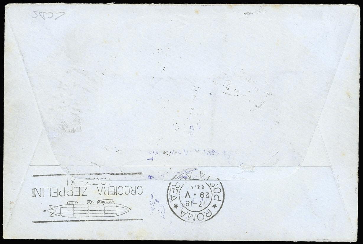 1933 - Crociera Zeppelin, serie completa (A45/A50), con valori complementari, su 5 aerogrammi da Roma, viaggiati con il Graf Zeppelin, ... Leggi tutto