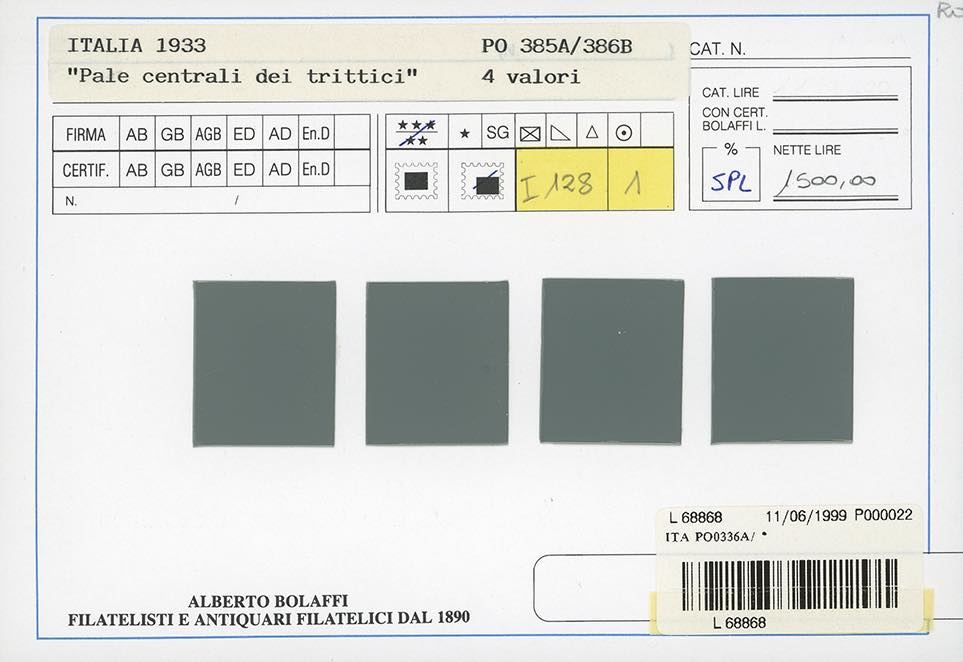 Lotto 232 - 1933 - Le pale centrali dei Trittici del Regno d'Italia e ...
