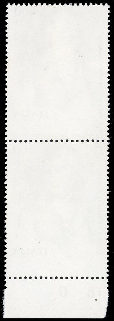 1994 - 600 lire Giornata della Filatelia, dentellatura orizzontale fortemente spostata in basso, coppia verticale, il primo esemplare con ... Leggi tutto