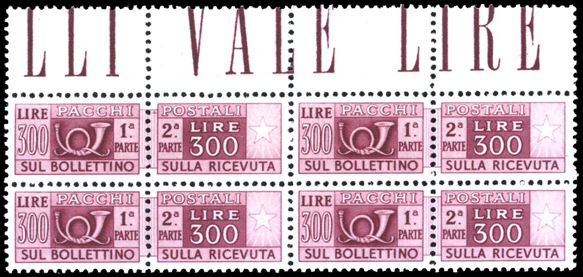 1946 - 300 lire filigrana ruota (79), ottima centratura, blocco di quattro, bordo di foglio, gomma originale integra, perfetto. Splendido. ... Leggi tutto