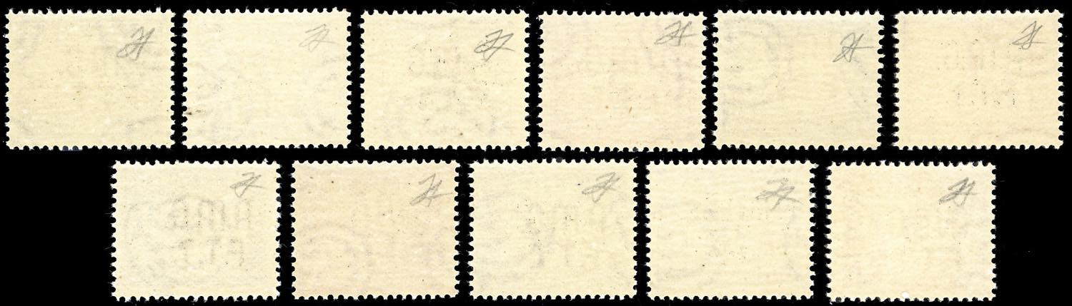 SEGNATASSE 1947/49 - Soprastampati su due righe, serie completa (5/15), perfetti, nuovi, gomma originale integra. Tutti firmati Ferrario.