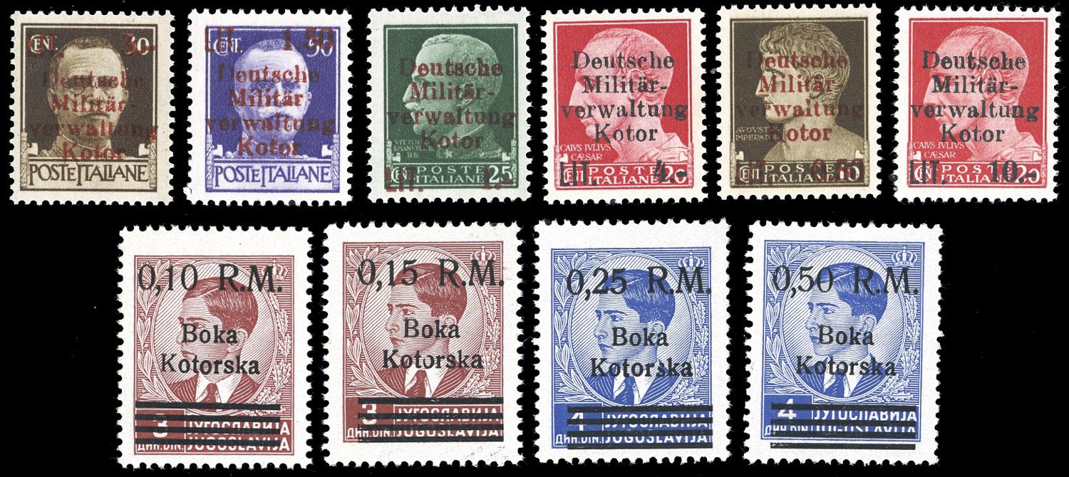 OCCUPAZIONE TEDESCA CATTARO 1944 - Soprastampati, le due serie complete (1/6,7/10), nuovi, gomma originale integra, perfetti. Molto freschi, ottima qualità.