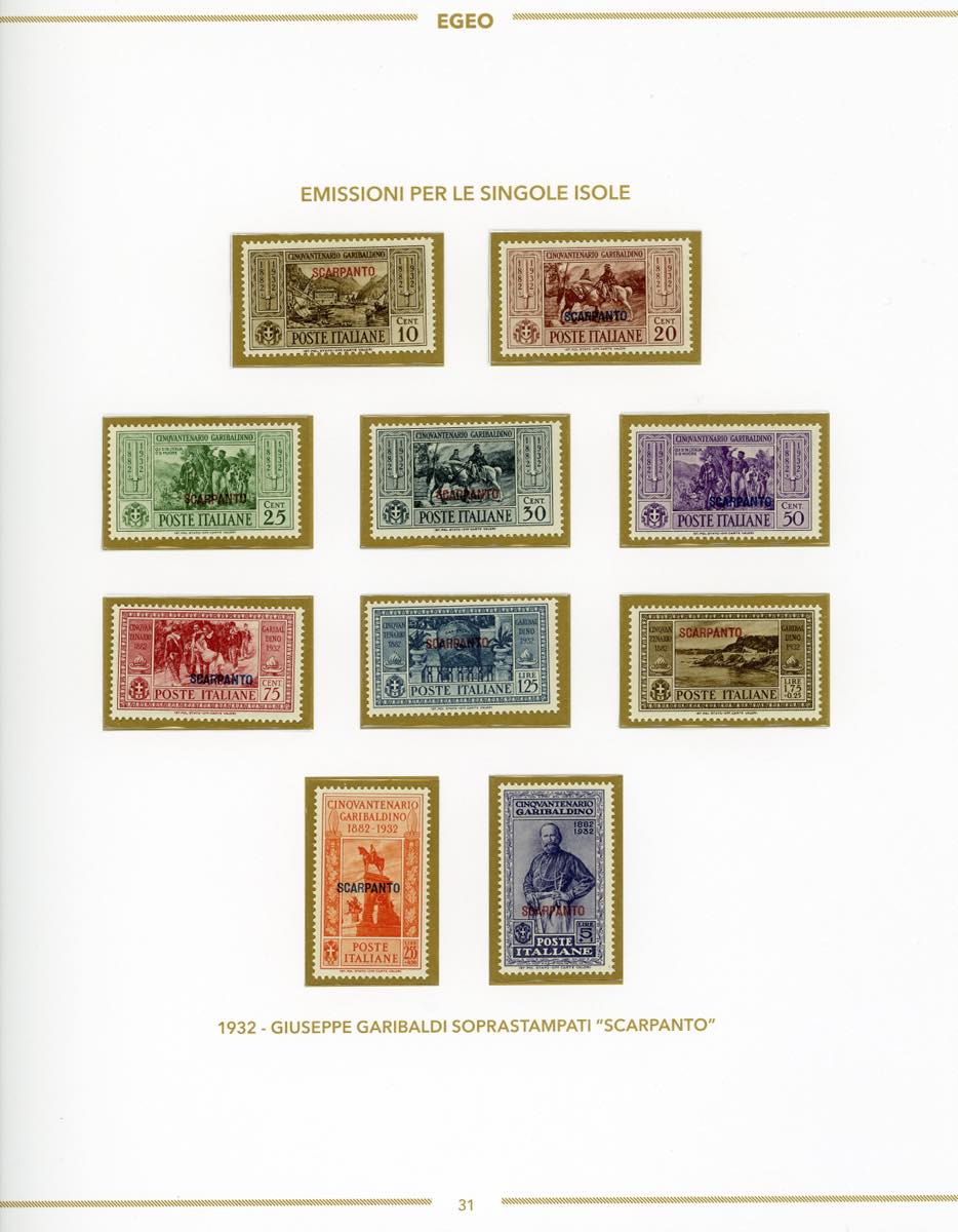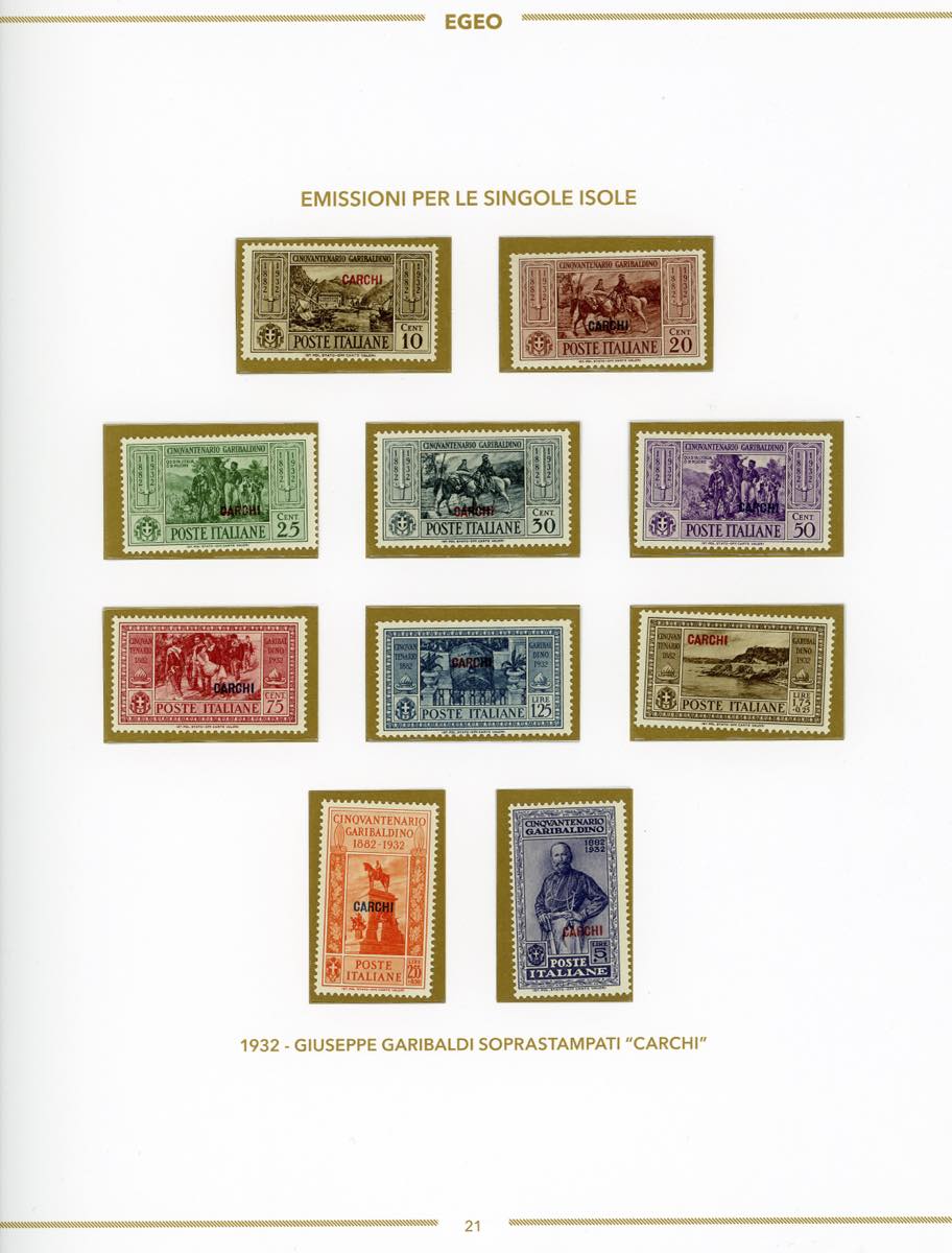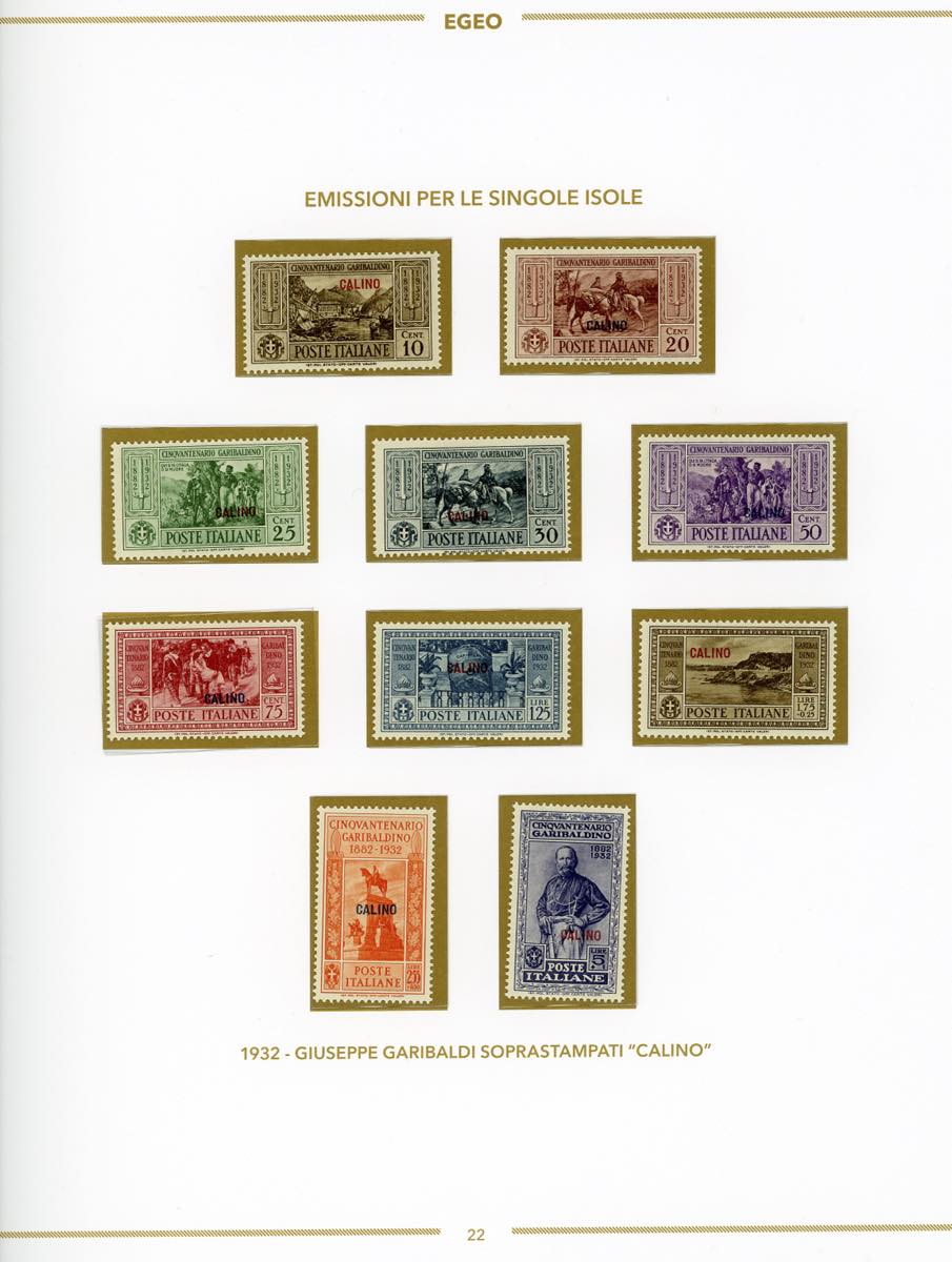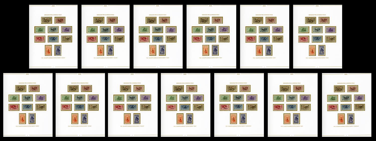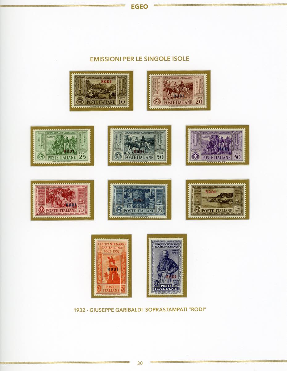 GIRI ISOLE 1932 - Garibaldi, serie completa (17/26, Rodi 20/29), giro delle 13 isole, nuovi, gomma originale integra, perfetti, montati su fogli d'album Bolaffi. Ottima qualità.