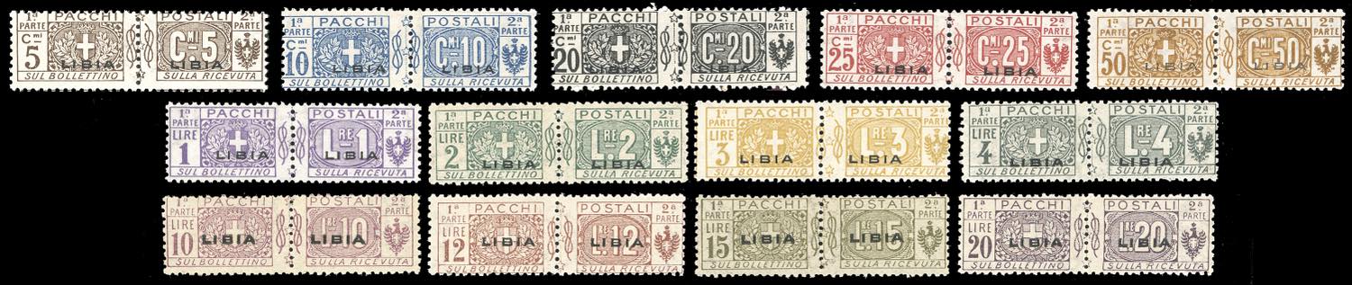 PACCHI POSTALI 1915/24 - Nodo di Savoia, soprastampati, serie completa (1/13), nuovi, gomma originale integra, perfetti. Molto freschi. Alti valori cert. finanziario Bolaffi.