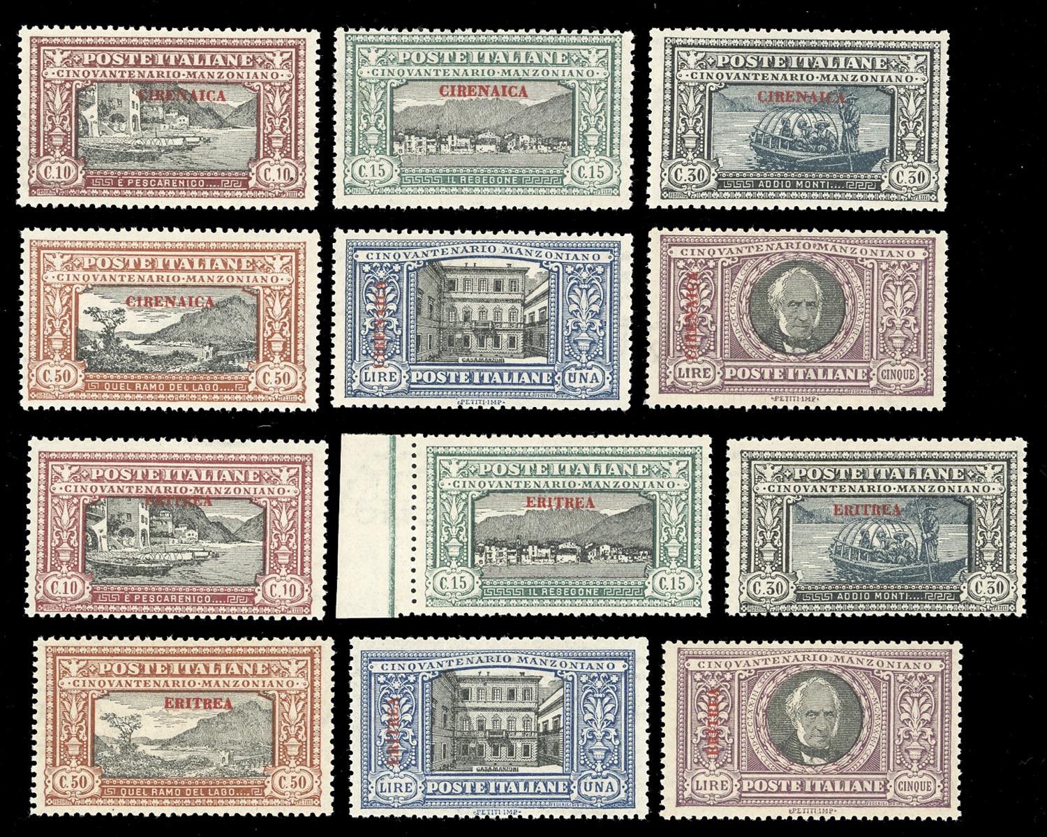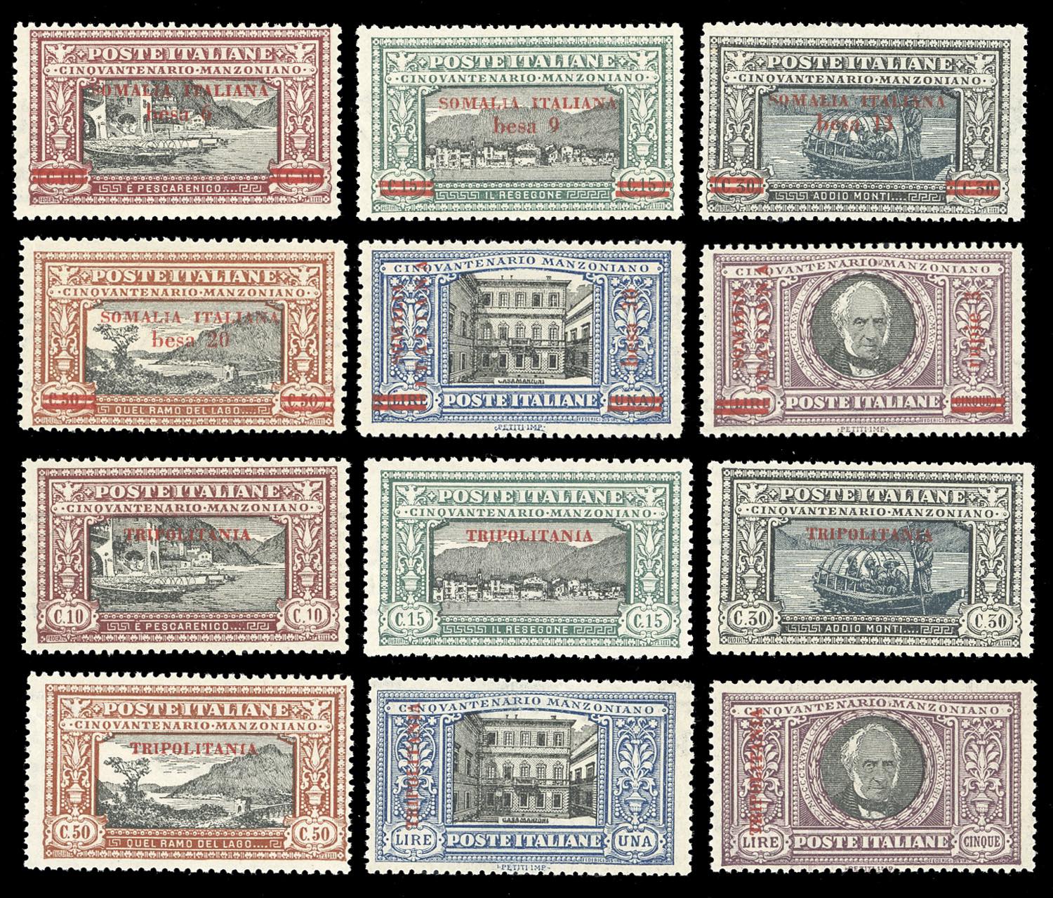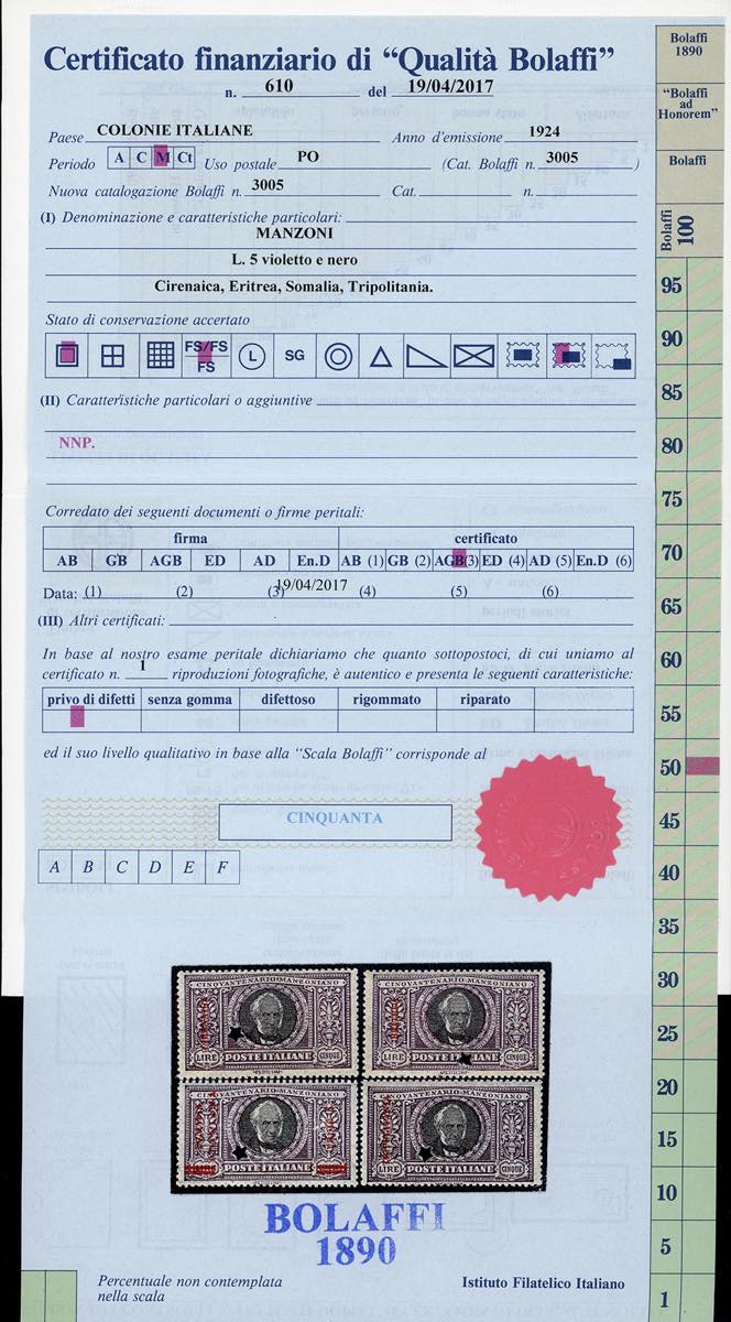 1924 - Manzoni, giro completo delle quattro Colonie, nuovi, gomma originale integra, perfetti. Bellissimi, qualità superiore. Cert. finanziario Bolaffi.