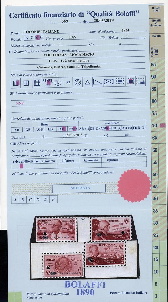 Lotto 610 - SERVIZIO AEREO DI STATO 1934 - Giro completo delle quattro ...