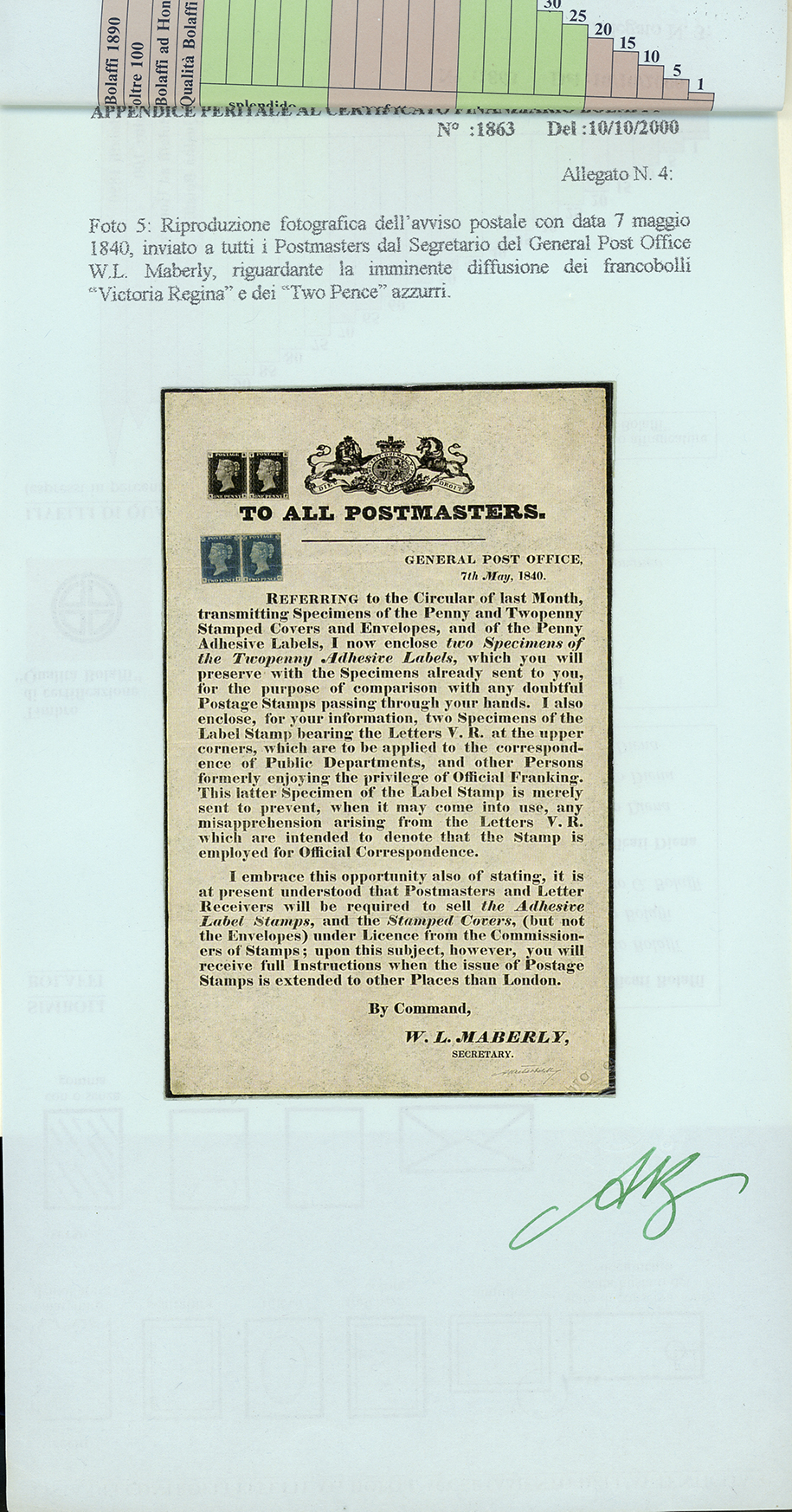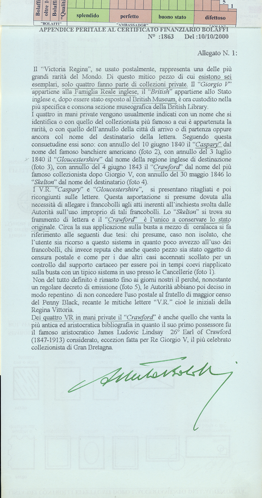Cert. finanziario Bolaffi.