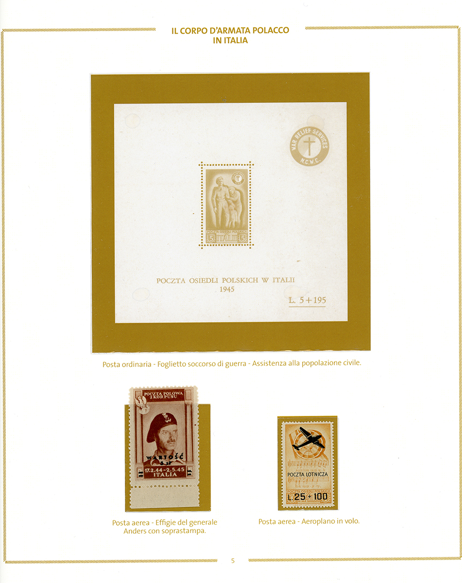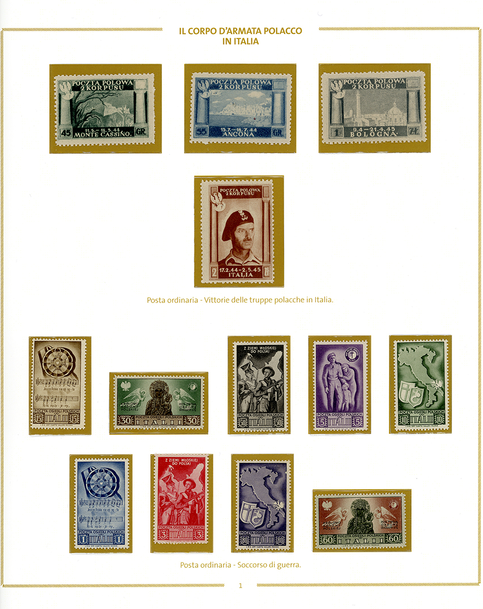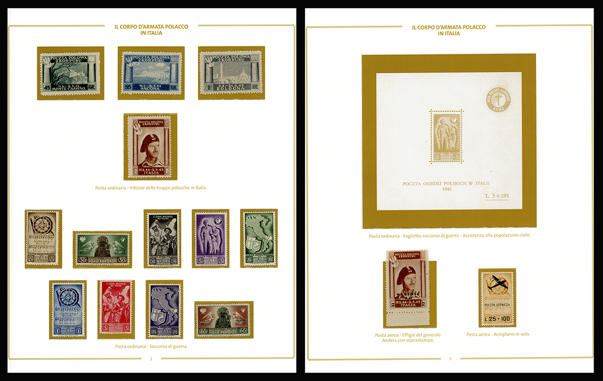 CORPO POLACCO 1946 - Vittorie polacche in Italia, Soccorso di guerra e due esemplari di posta aerea (1/4,18/26,A1,A3), nuovi, gomma originale integra, perfetti, in fogli d'album Bolaffi.