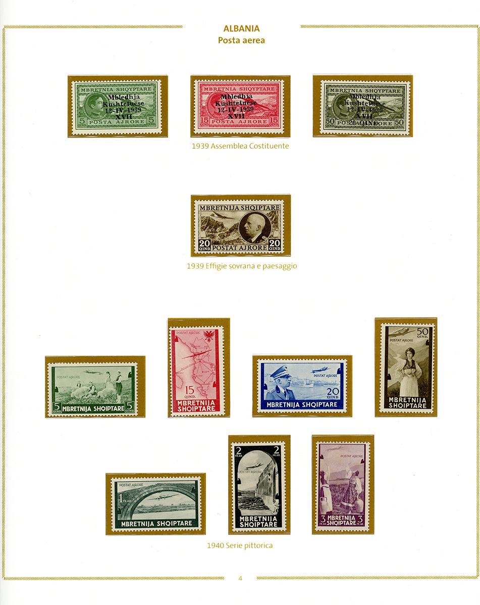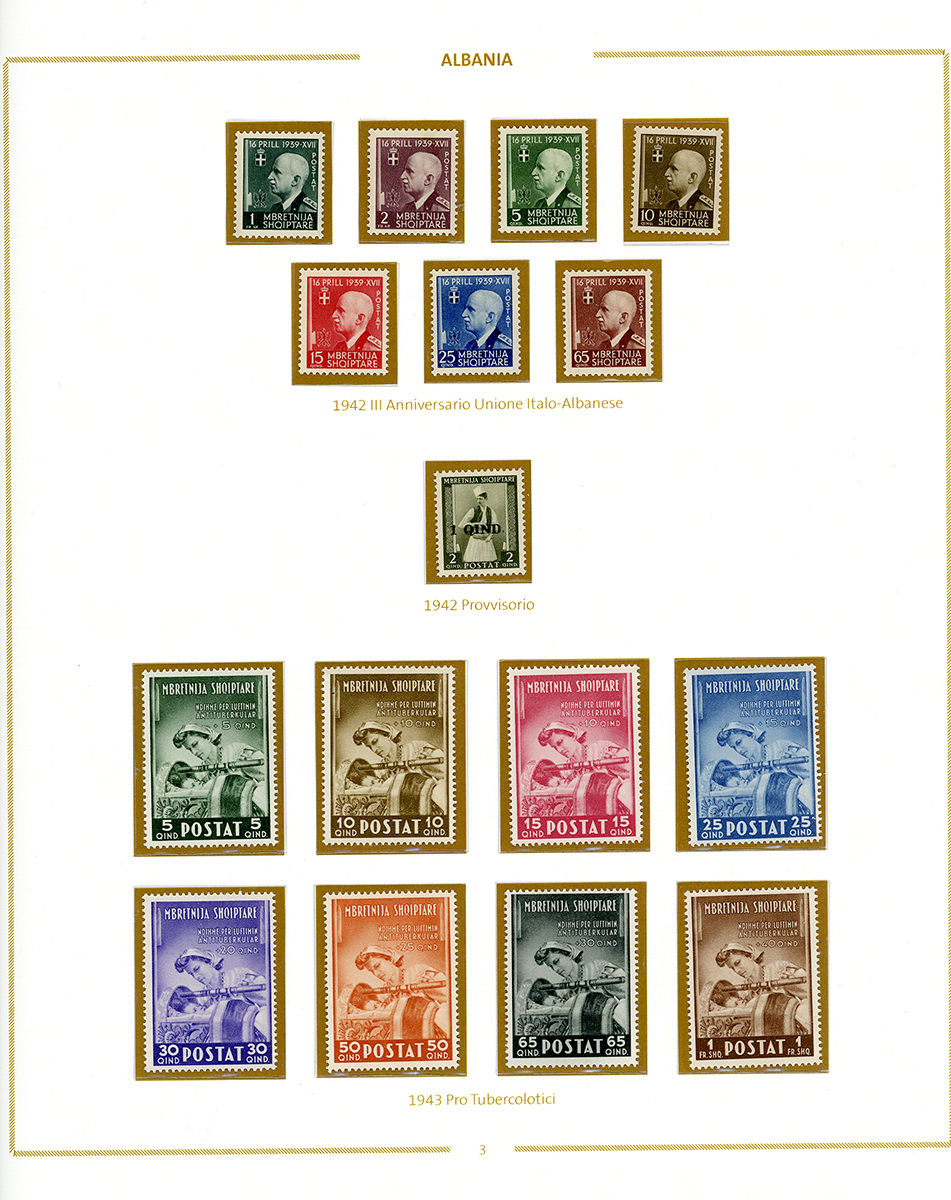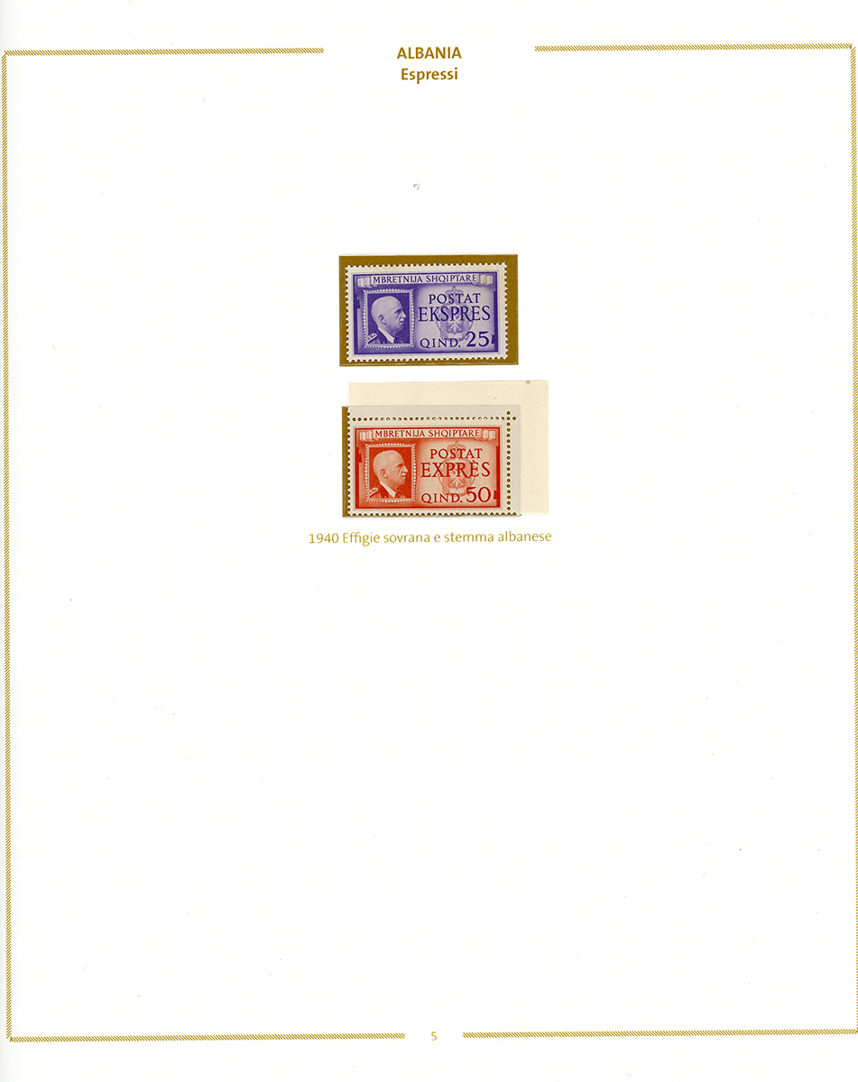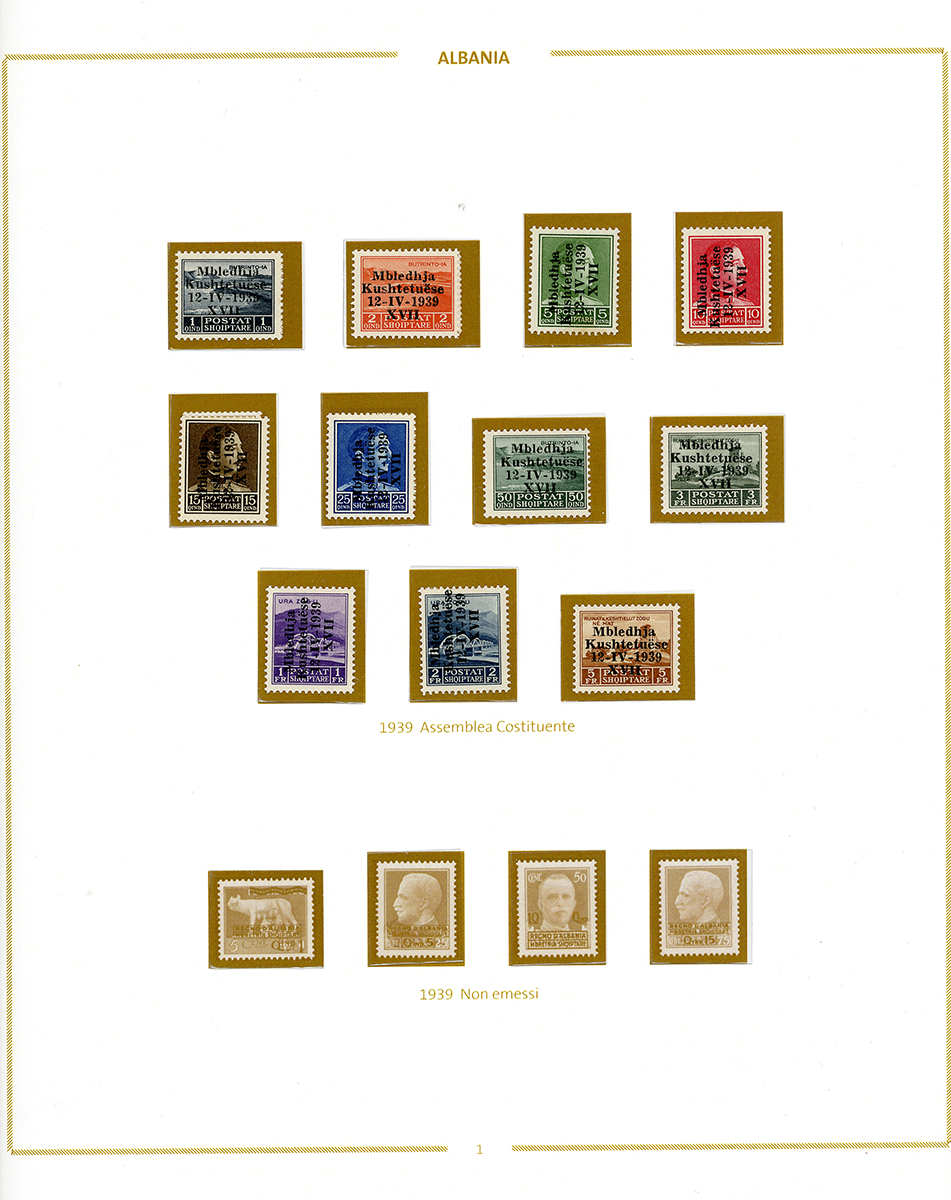 OCCUPAZIONE ITALIANA ALBANIA 1939/1943 - Collezione completa di francobolli e servizi del periodo, mancano solo i non emessi (12/15), nuovi, gomma originale integra, perfetti, in fogli d'album Bolaffi. Ottima qualità generale.