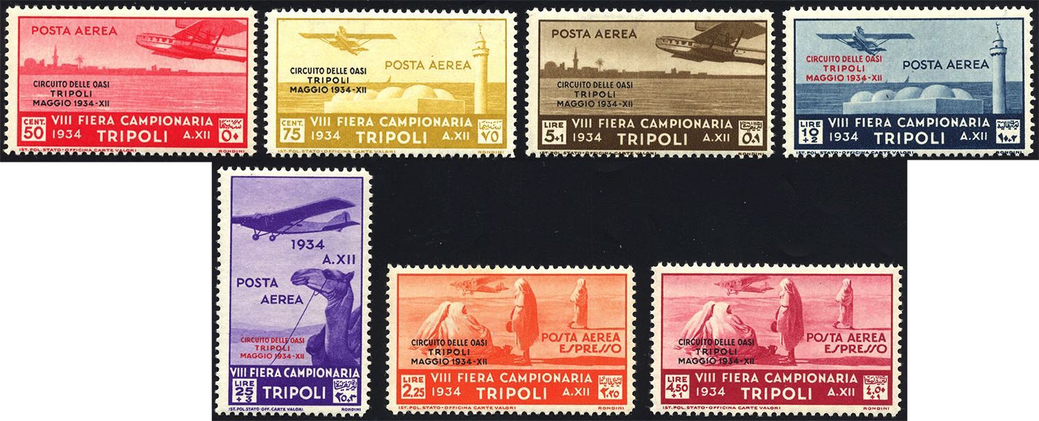 Lotto 2240 - POSTA AEREA 1934 - Circuito delle Oasi (34/40), gomma ...