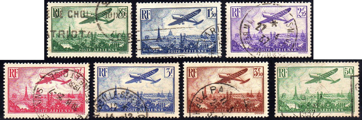 FRANCIA POSTA AEREA 1936 - Aeroplano (A8/A14), usati, perfetti.