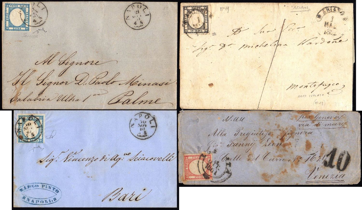 PROVINCE NAPOLETANE 1861/1862 - Quattro lettere affrancate con i francobolli dell'emissione.