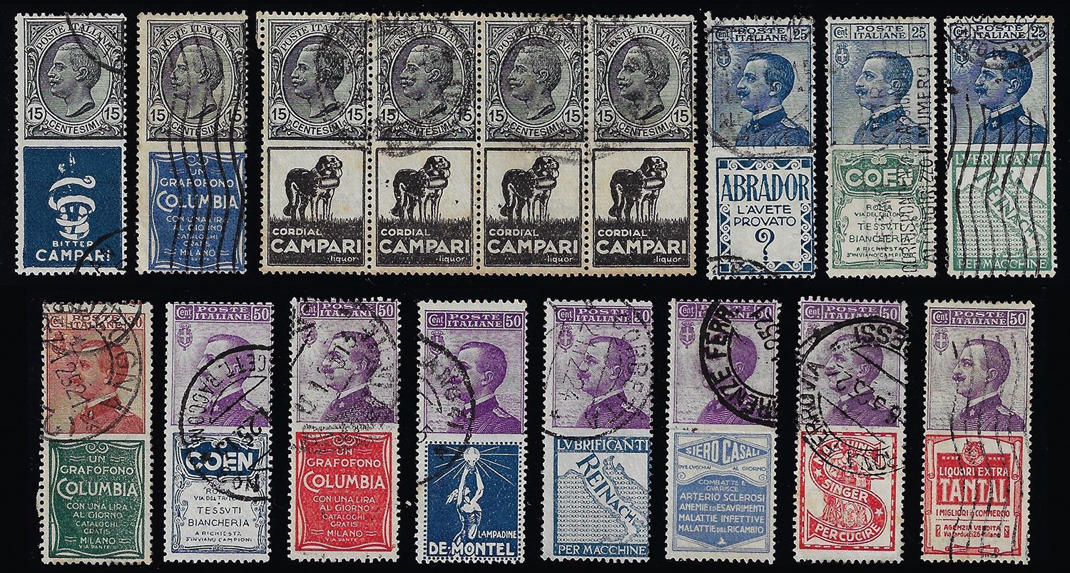 REGNO PUBBLICITARI 1924 - Diciassette esemplari dell'emissione, usati, ottima qualità generale.