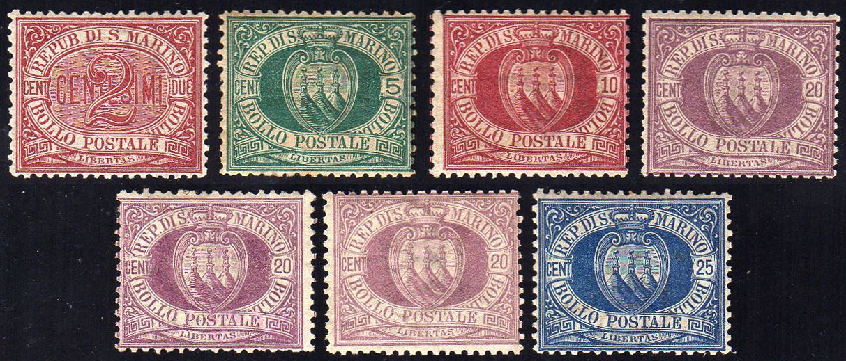 SAN MARINO 1894/1999 - Piccolo insieme di esemplari dell'emissione (26,27,28x3,30), gomma originale, integra per tre esemplari, perfetti.